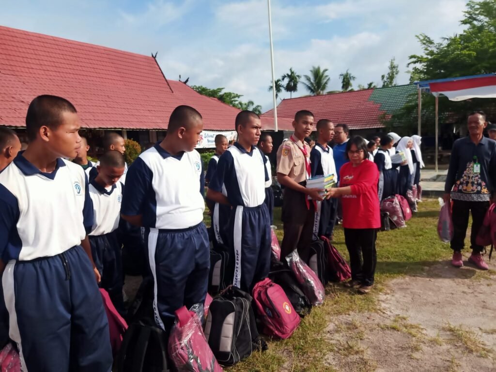 “Kita bersyukur dan berterima kasih atas bantuan itu. Para siswa harus memanfaatkan bantuan perlengkapan sekolah itu dengan sebaik-baiknya. Pelajari buku-buku pelajaran dengan penuh antusiasme untuk meningkatkan kompetensi. Buktikan bahwa kalian juga bisa berubah menjadi lebih baik lagi dan menunjukkan prestasi terbaik,” tuturnya memotivasi.