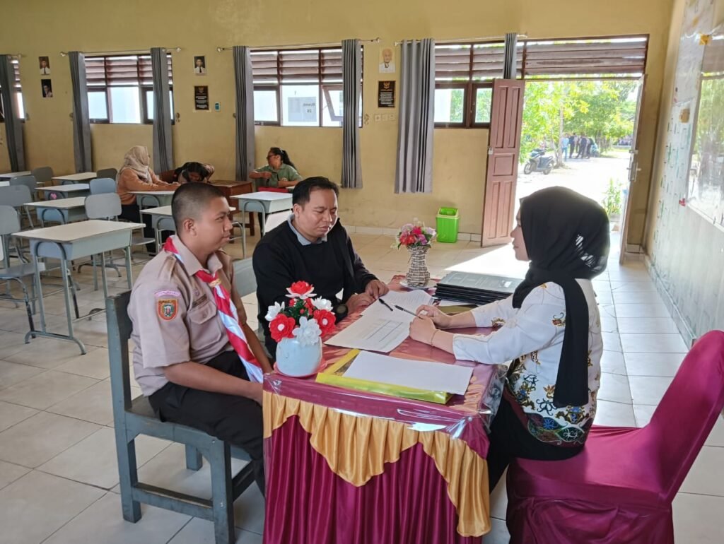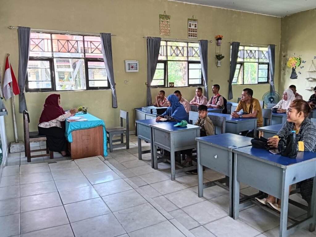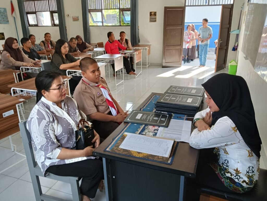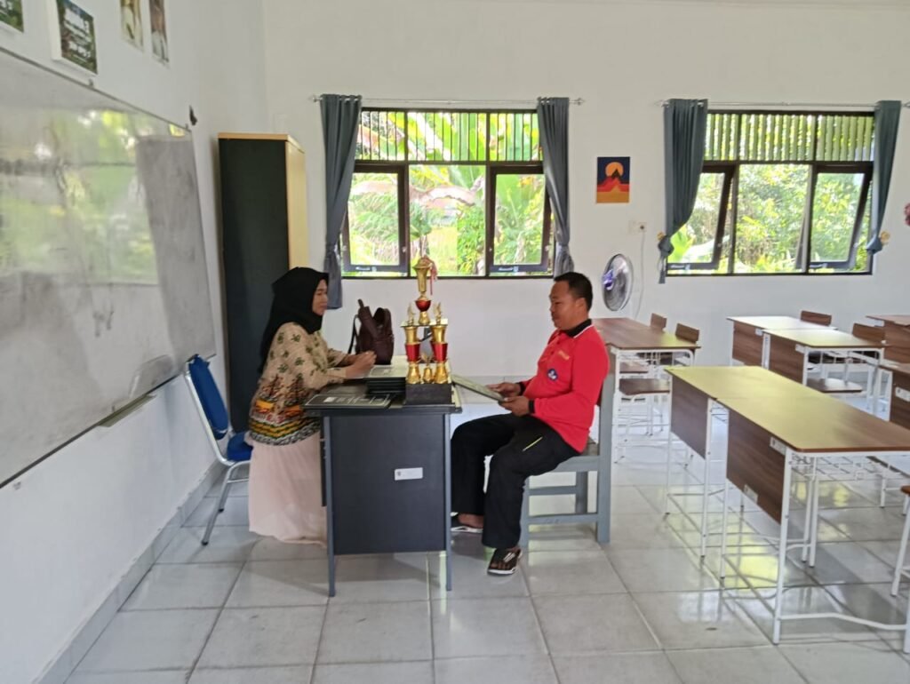 Tampak para wali kelas di kelasnya dengan sabar menanti kehadiran orang tua/wali. Setelah itu, dengan sabar pula memberikan penjelasan terkait nilai rapor.