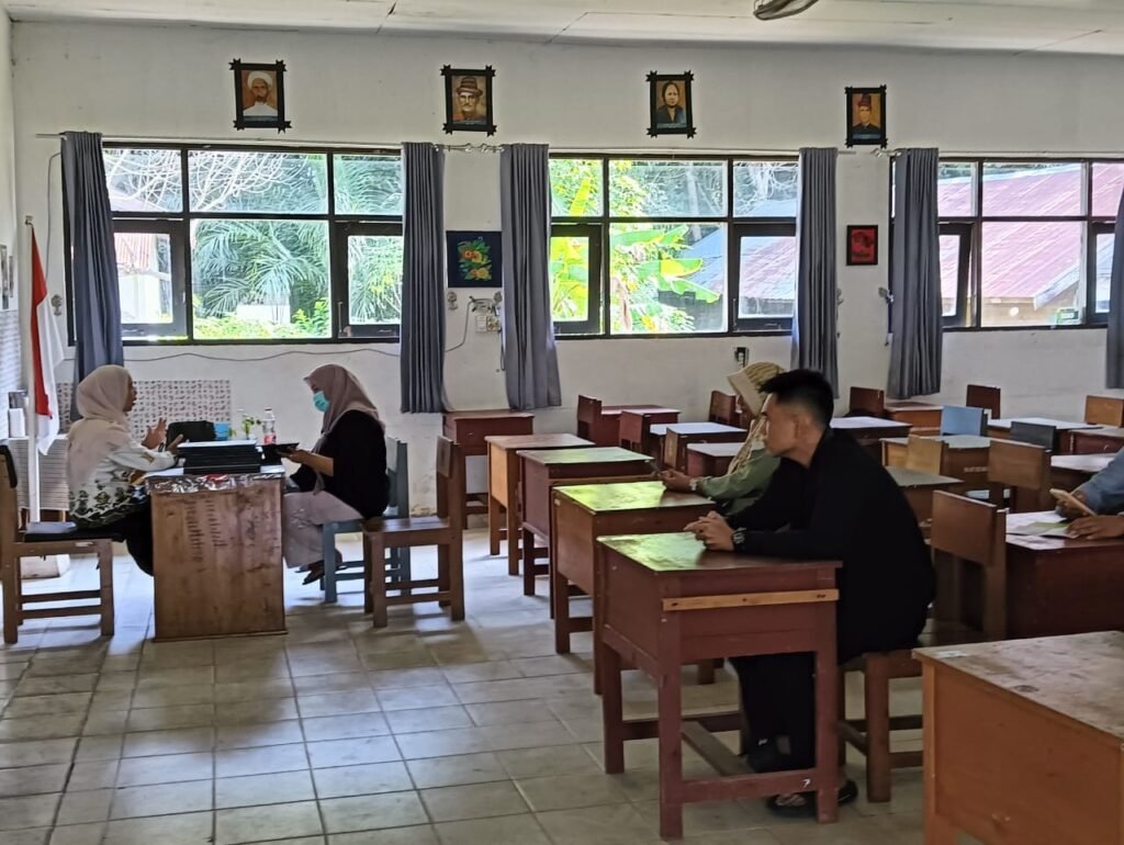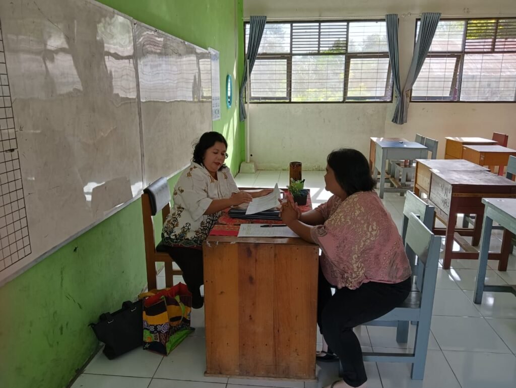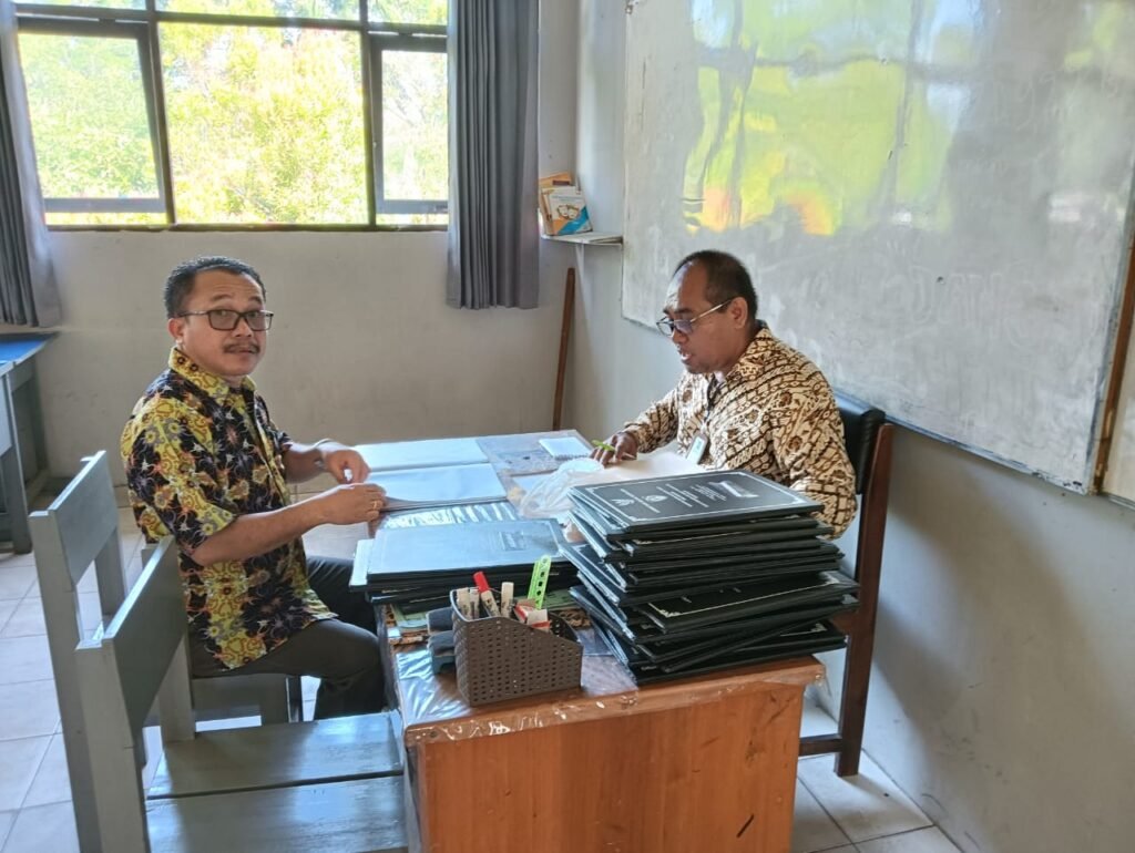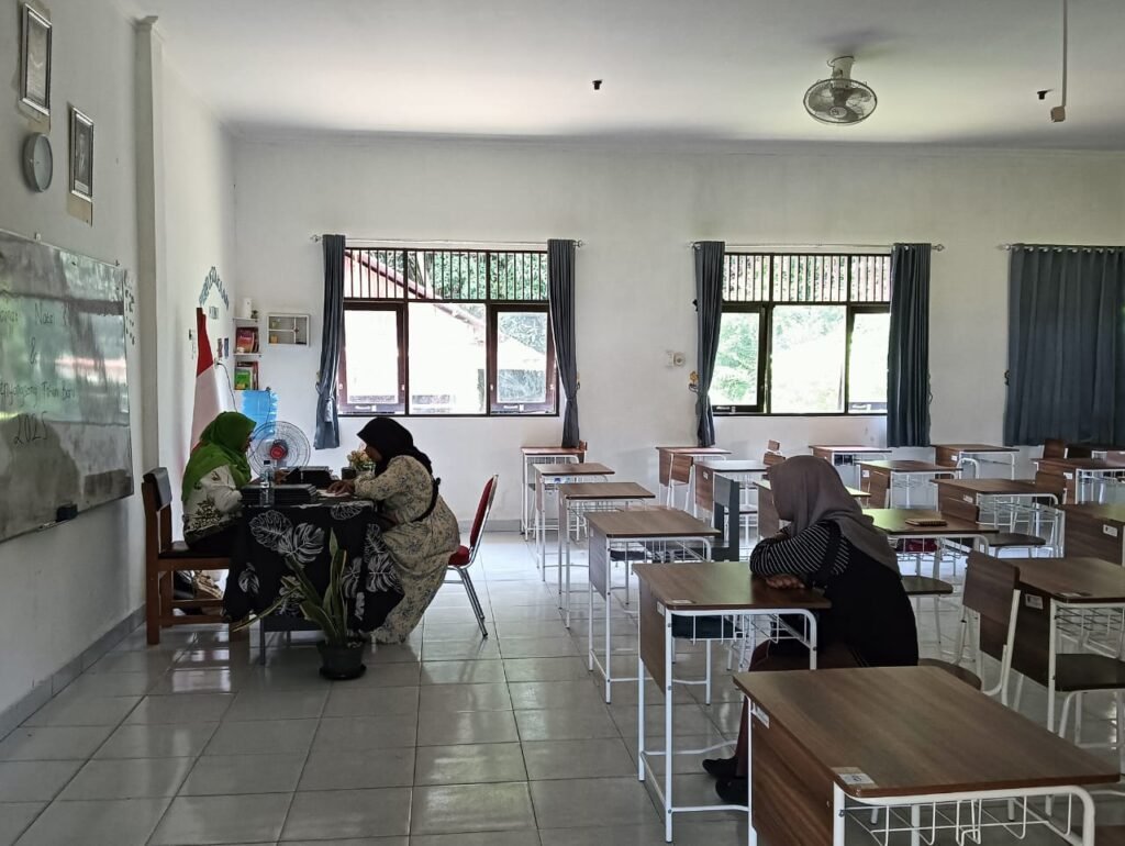 Tampak para wali kelas di kelasnya dengan sabar menanti kehadiran orang tua/wali. Setelah itu, dengan sabar pula memberikan penjelasan terkait nilai rapor.