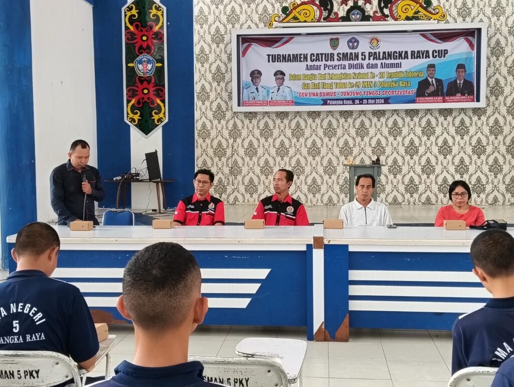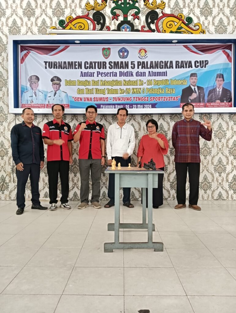 SMAN 5 Palangka Raya menggelar turnamen catur pada Jumat, 24 Mei 2024. Kegiatan yang masih dalam rangkaian HUT sekolah ke-29 dan Peringatan Hardiknas 20 Mei 2024 ini juga untuk memfasilitasi minat, bakat, dan potensi siswa, khususnya mereka yang tergabung dalam ekstrakurikuler catur.