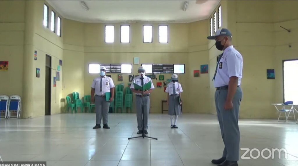 Masih berlangsungnya pandemi Covid-19 dan perpanjangan masa Pemberlakukan Pembatasan Kegiatan Masyarakat (PPKM), membuat Pembelajaran Tatap Muka (PTM) Terbatas terpaksa ditunda. Pembelajaran Jarak Jauh (PJJ) Daring pun masih menjadi solusi serta pilihan. Begitu juga pelaksanaan Upacara Bendera pun masih harus dilaksanakan secara virtual. Hanya Sebagian kecil hadir secara terbatas, seperti kepala sekolah, wakasek, dibantu beberapa wali kelas dan siswa yang bertugas dalam upacara di aula.