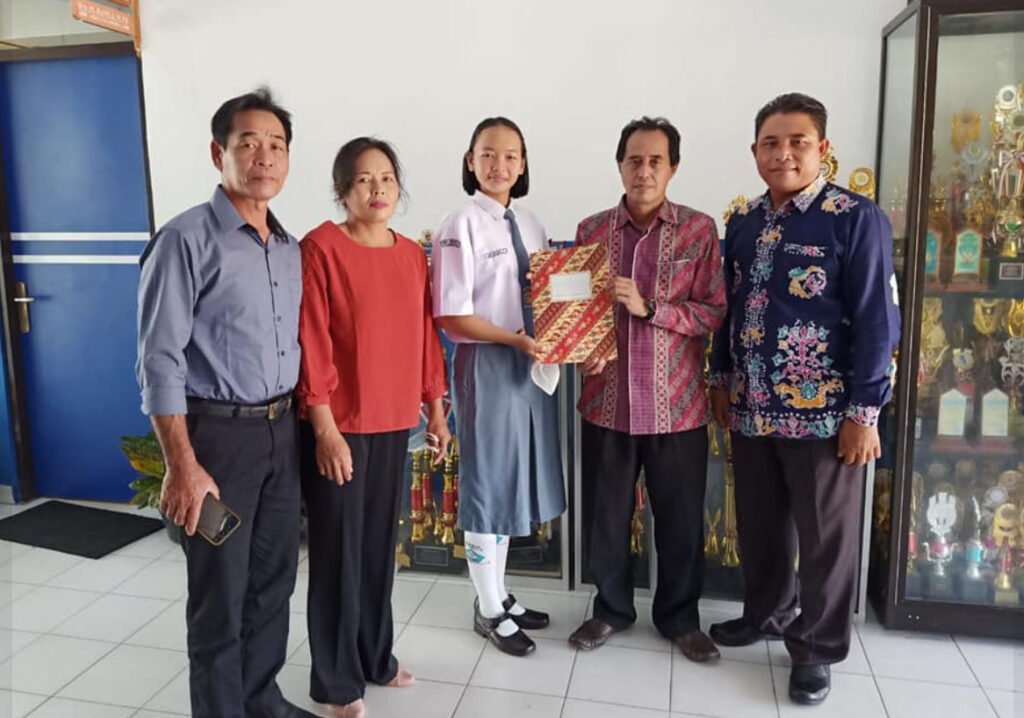 Selain mendapat dukungan amanat dan semangat, kepala sekolah melalui Tim BP2 juga memberikan sejumlah uang saku untuk lebih memotivasi. Ketua BP2 yang sekaligus Wakasek Kesiswaan, Jonkenedy, M.Pd., menyerahkannya secara langsung kepada Anjelina seraya menambahkan amanat.