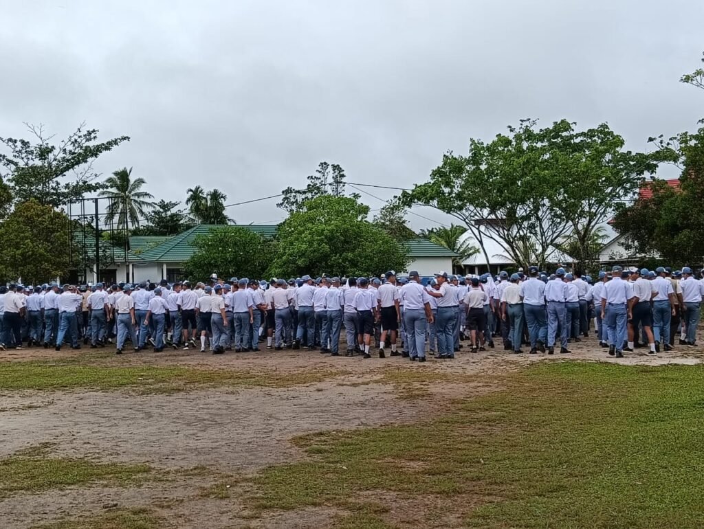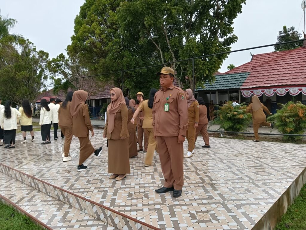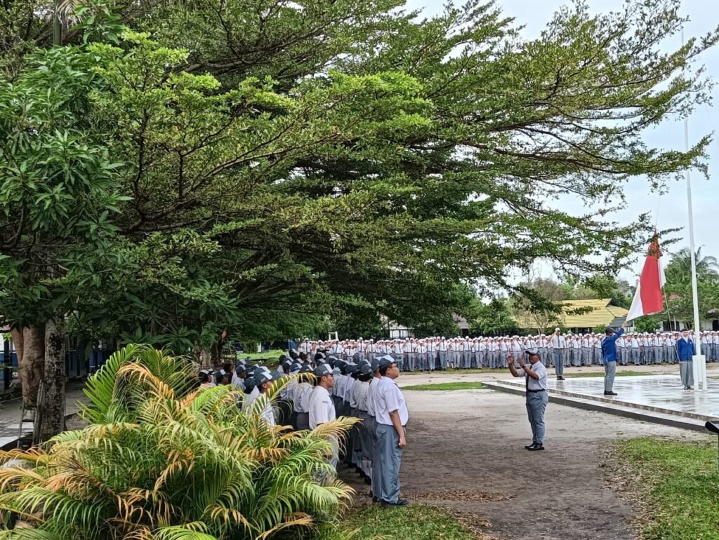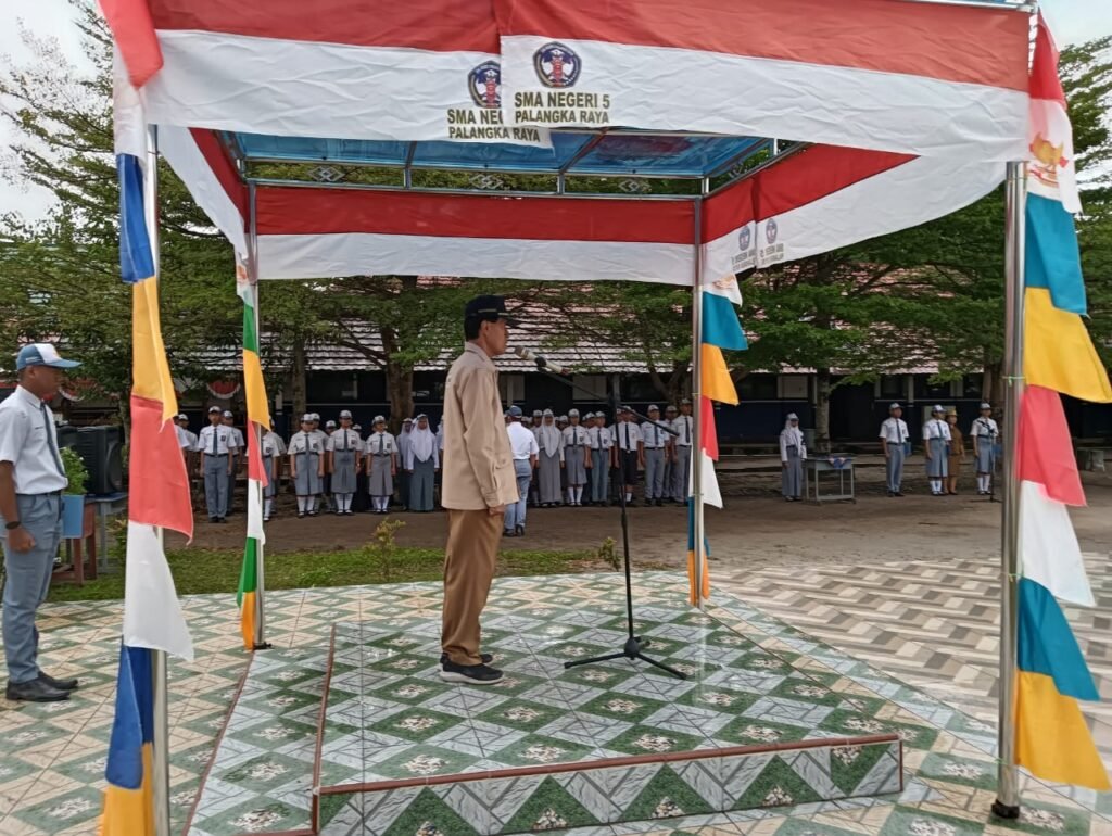 Upacara bendera di lapangan SMAN 5 Palangka Raya tetap dimulai pukul 06.30 seperti biasa. Barisan berseragam murid dan guru tampak rapi meski tidak lengkap. Ada yang terlambat tertahan di luar pagar sekolah. Sebagian murid ada juga yang sudah berada di laboratorium komputer untuk bersiap mengikuti Asesmen Nasional Berbasis Komputer (ANBK).