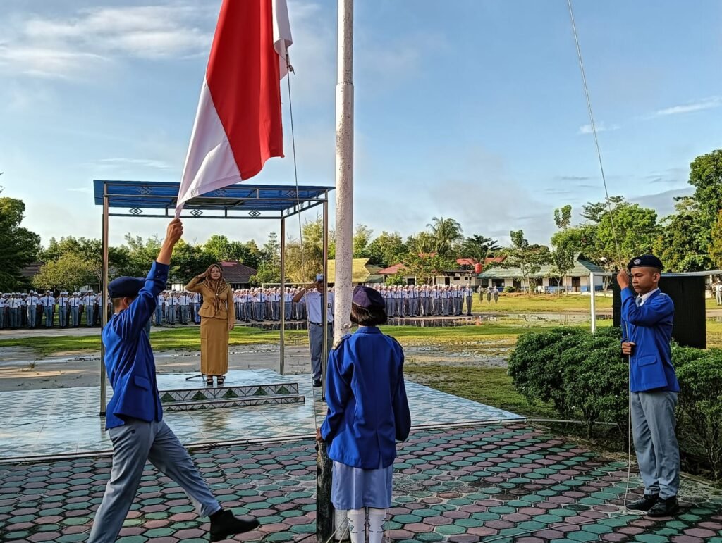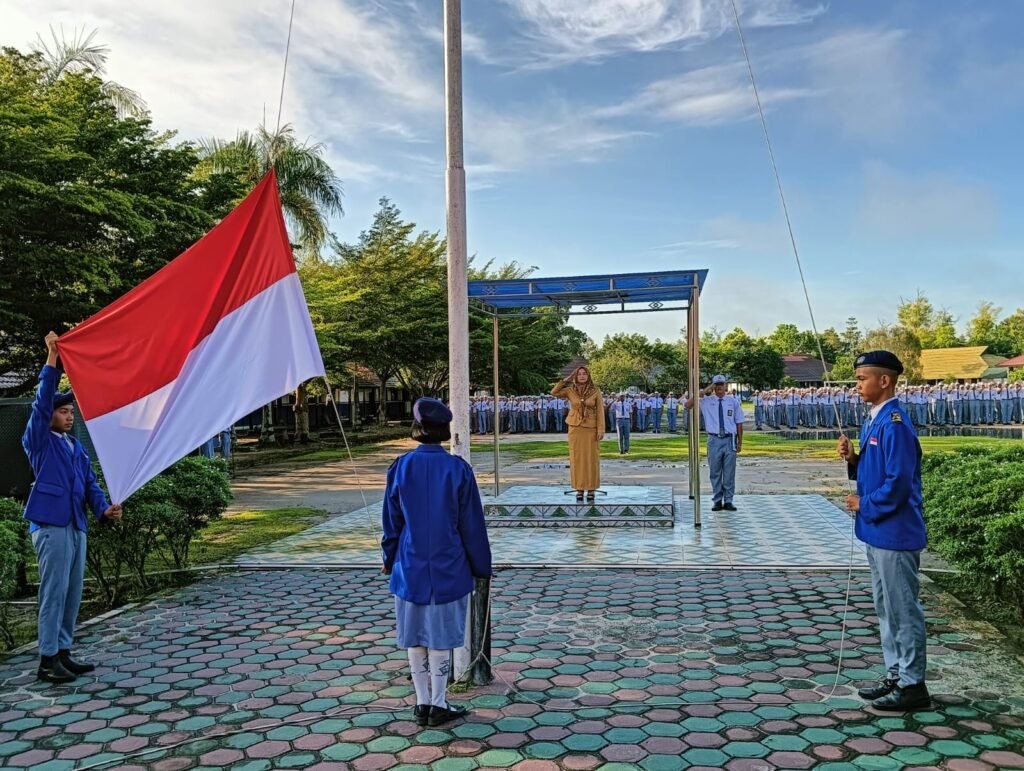 Hadir tepat waktu dan tidak terlambat ke sekolah juga bagian dari disiplin. Begitu pembina upacara, Patmawati, S.Pd., M.Pd. menyampaikan amanat sebagai pembina upacara Senin, 13 Mei 2024 di depan para siswa SMAN 5 Palangka Raya.