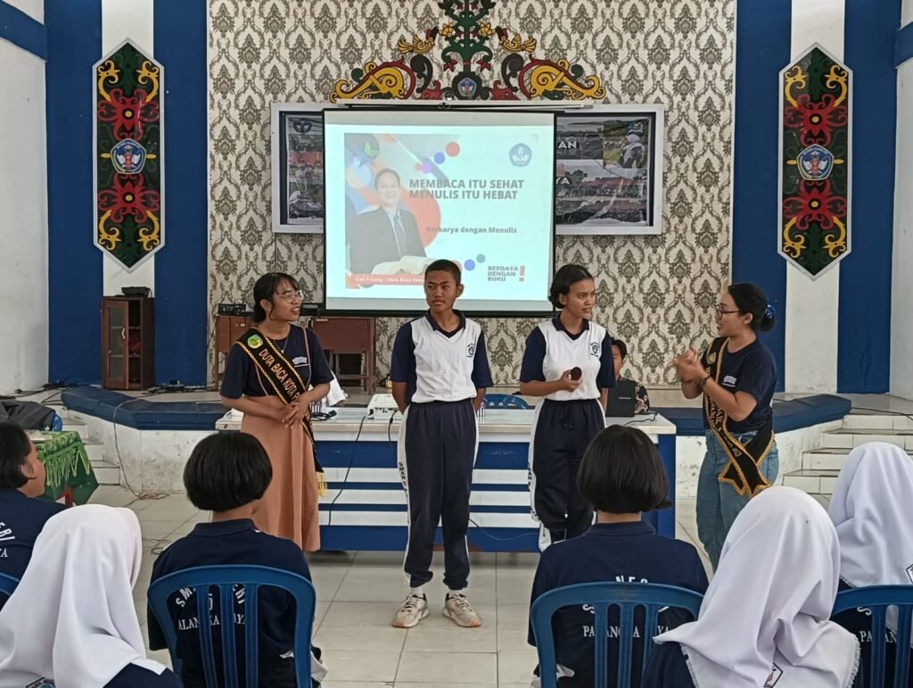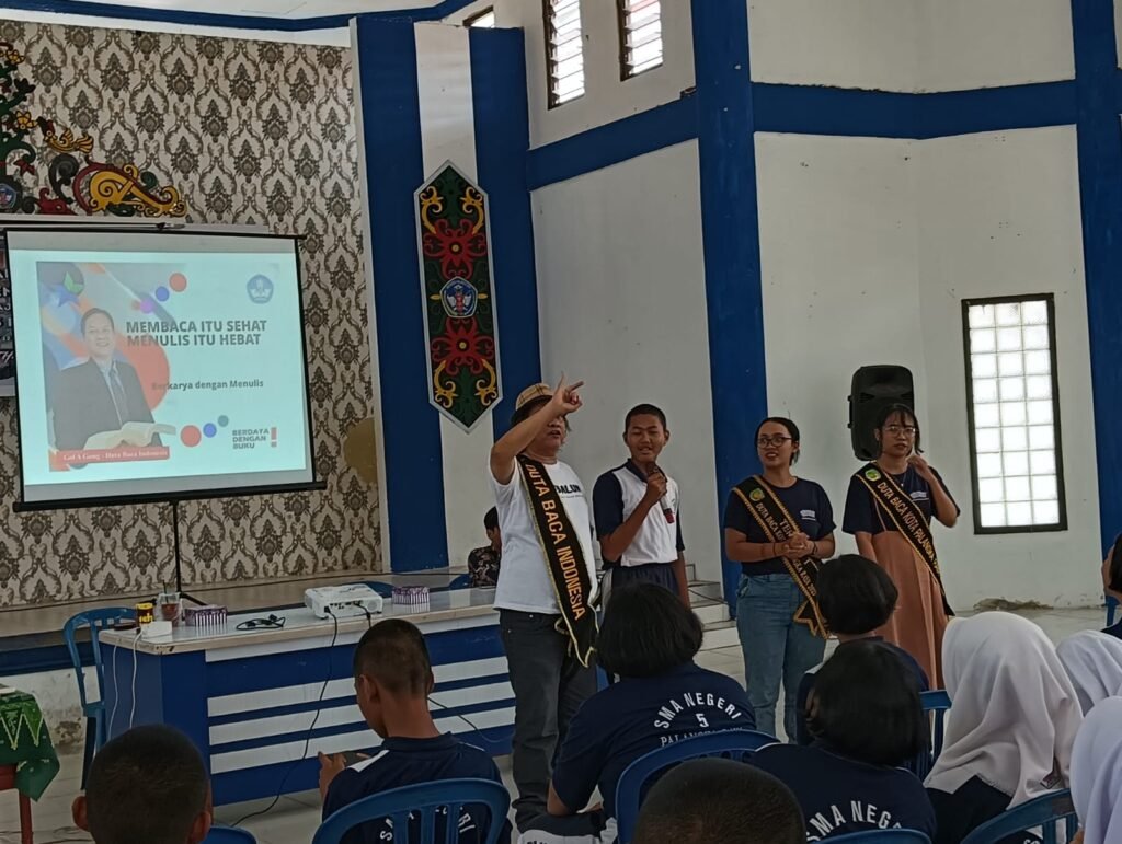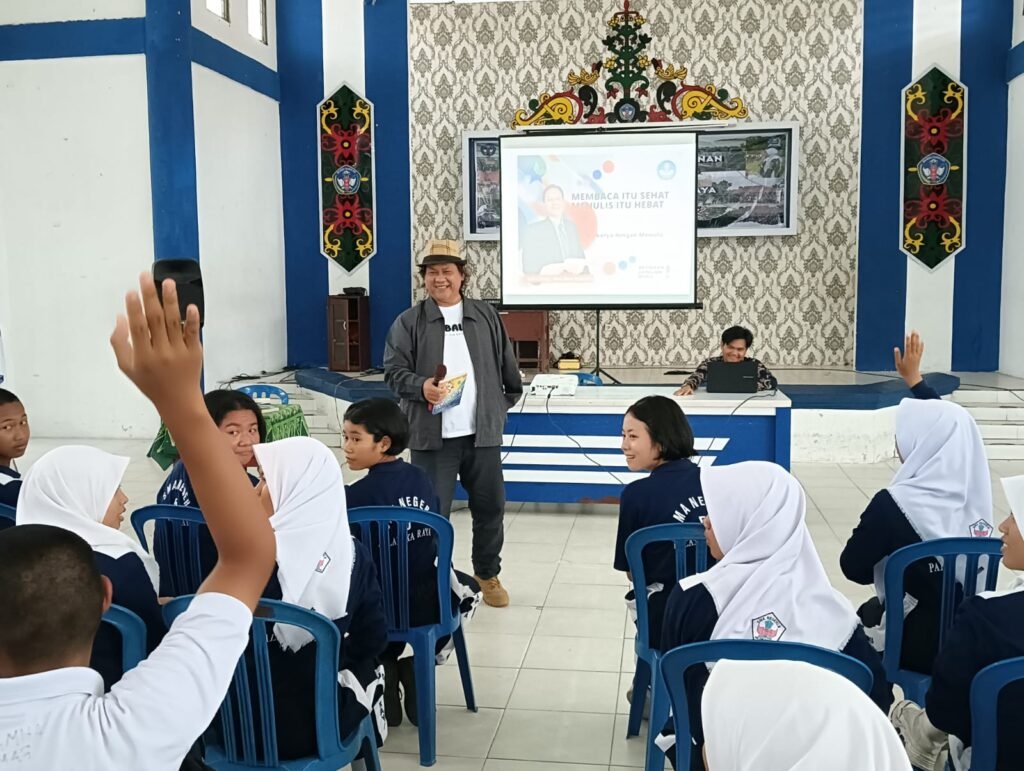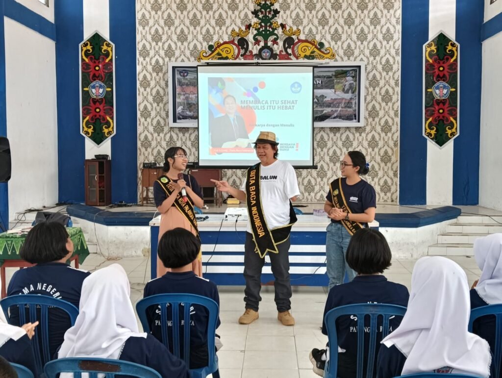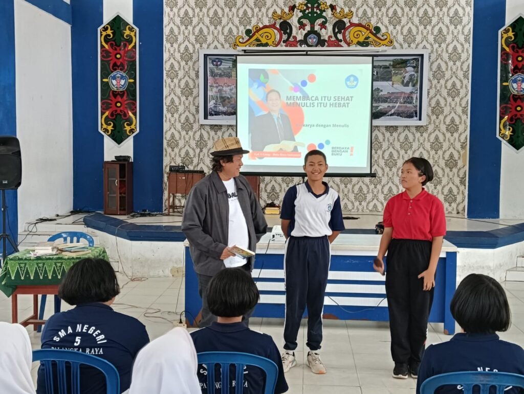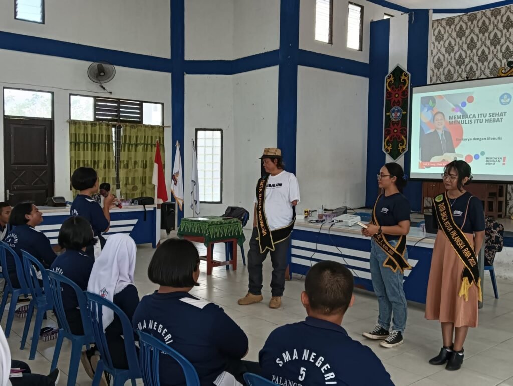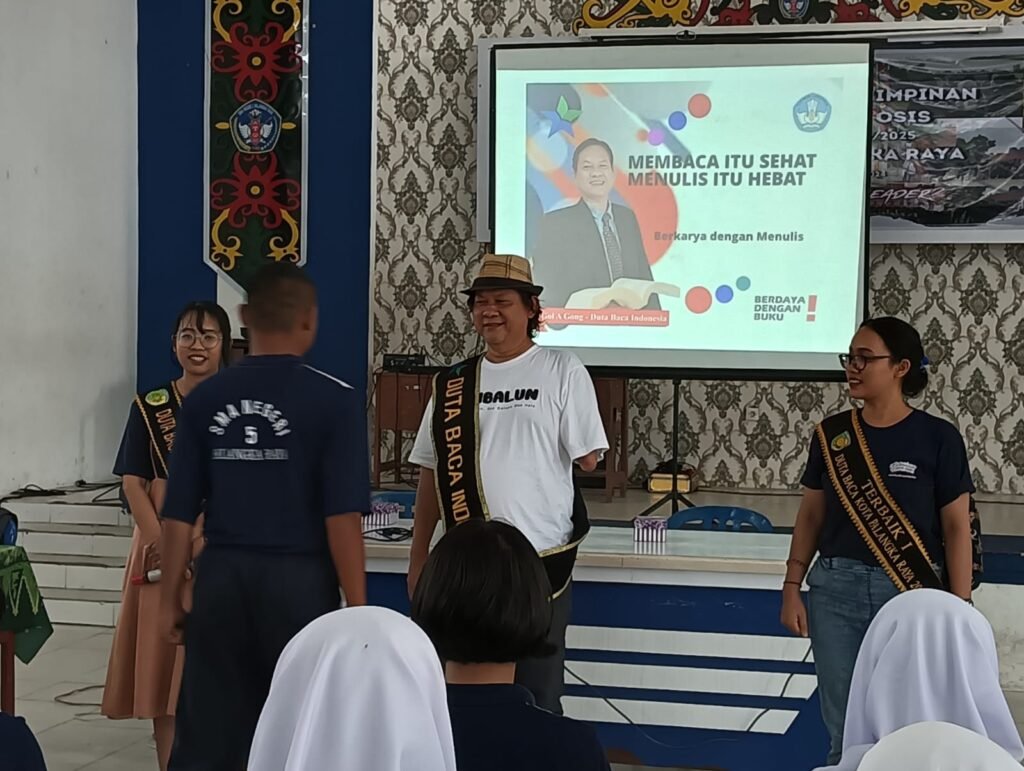 Membaca itu Sehat, Menulis itu Hebat. Demikian pesan Duta Baca Indonesia, Gol A Gong, dalam Gelar Wicara (Talkshow) di aula SMAN 5 Palangka Raya pada Jumat, 13 September 2024. Acara yang digelar Perpustakaan Nasional bekerja sama dengan Dispursip Kalteng dan perpustakaan sekolah ini sangat menarik antusiasme siswa untuk mengikutinya.