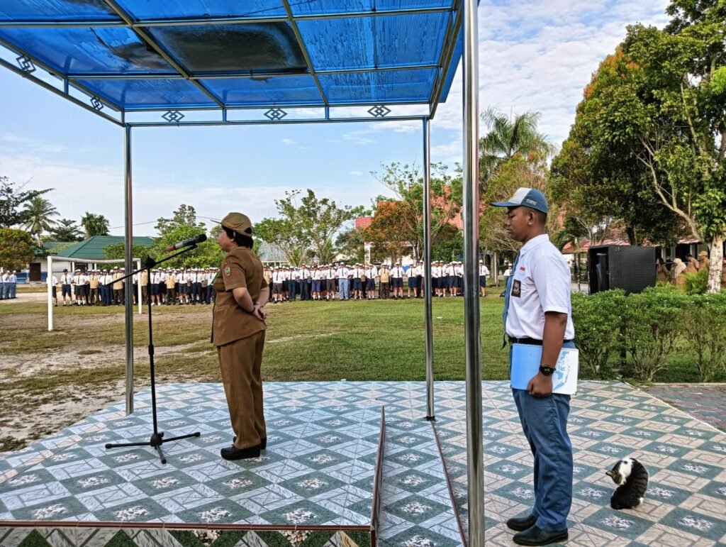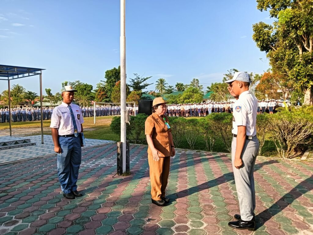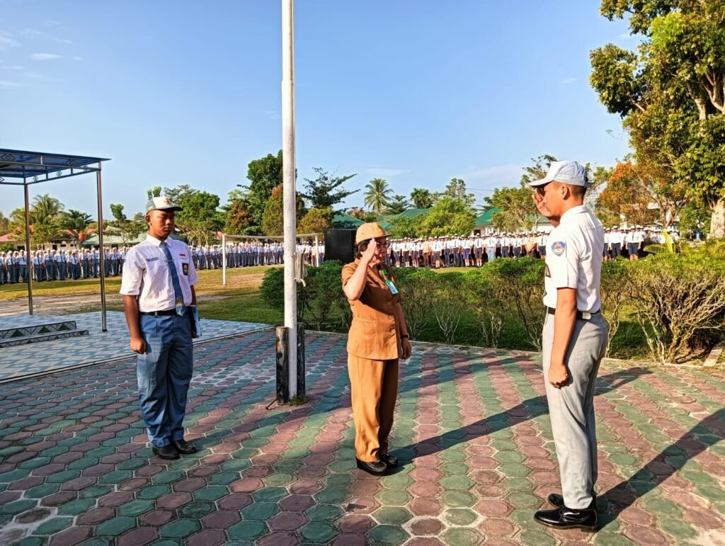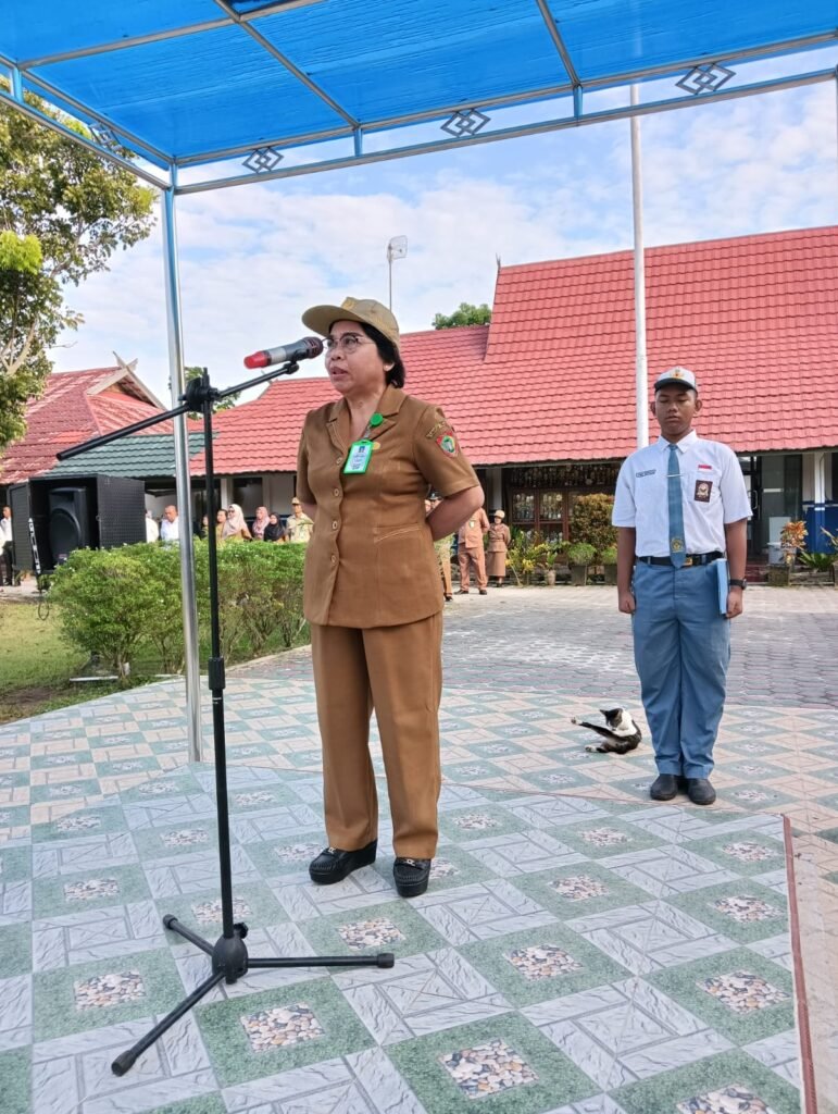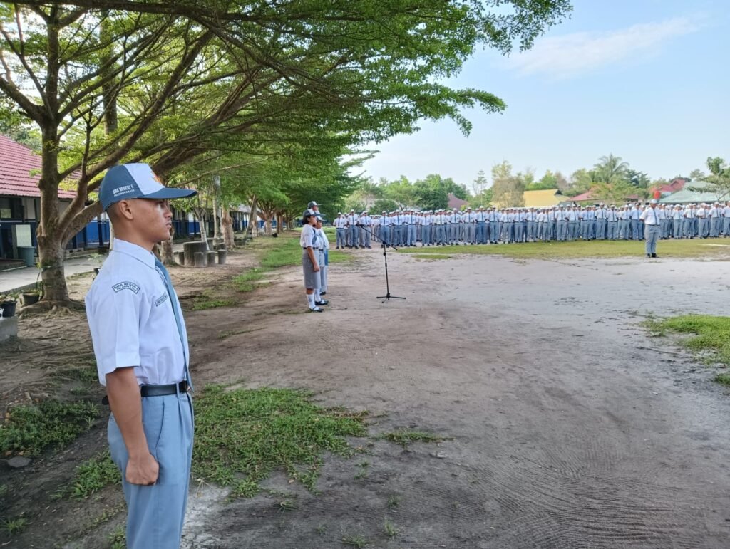 Pembina upacara Wakasek Kurikulum, Kasih, S.P.A.K., dengan jelas dan tegas menyampaikan amanatnya. Ia mengajak semua warga sekolah untuk mensyukuri dan menjaga lingkungan sekolah yang luas.