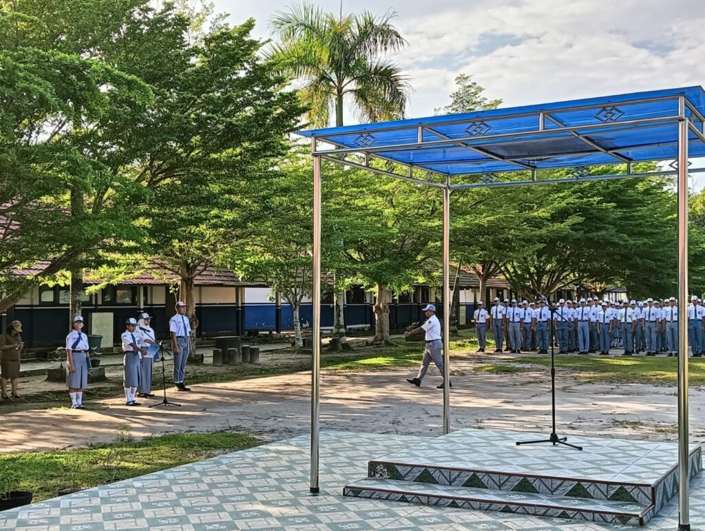 Cuaca cerah pada pagi Senin, 22 Juli 2024 membuat upacara berlangsung khidmat. Lebih seribu siswa dan puluhan guru serta staf rapi berdiri sepenuh tertib. Para petugas upacara pun melakukan tugasnya dengan baik.