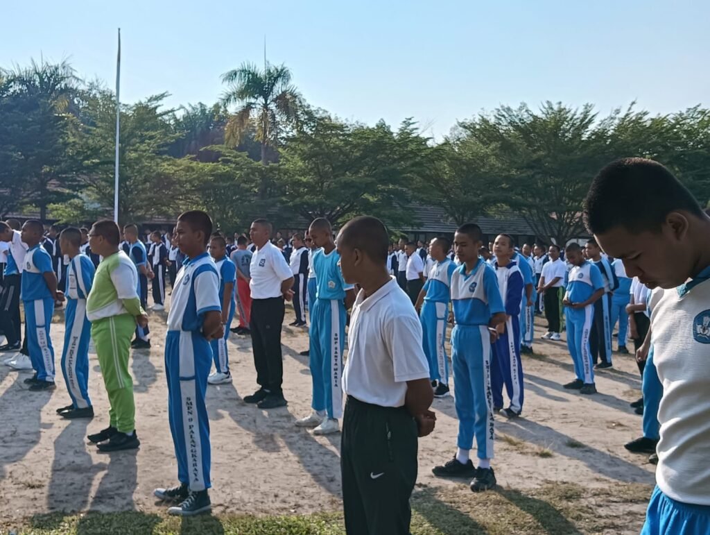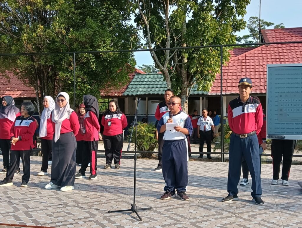 Lagu Indonesia Raya berkumandang mengawali pagi ceria. Disusul doa bersama membuat suasana hening sesaat. Hanya pemimpin doa, guru PAI, Irfan, S.Pd. yang terdengar membacakan larik-larik doa.