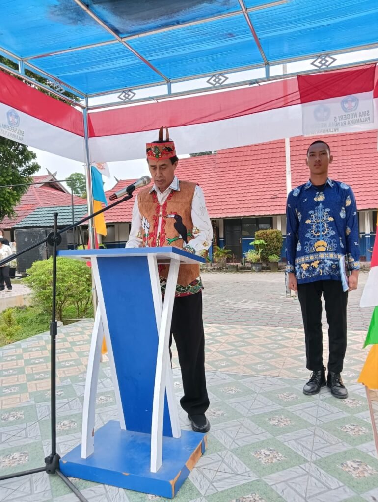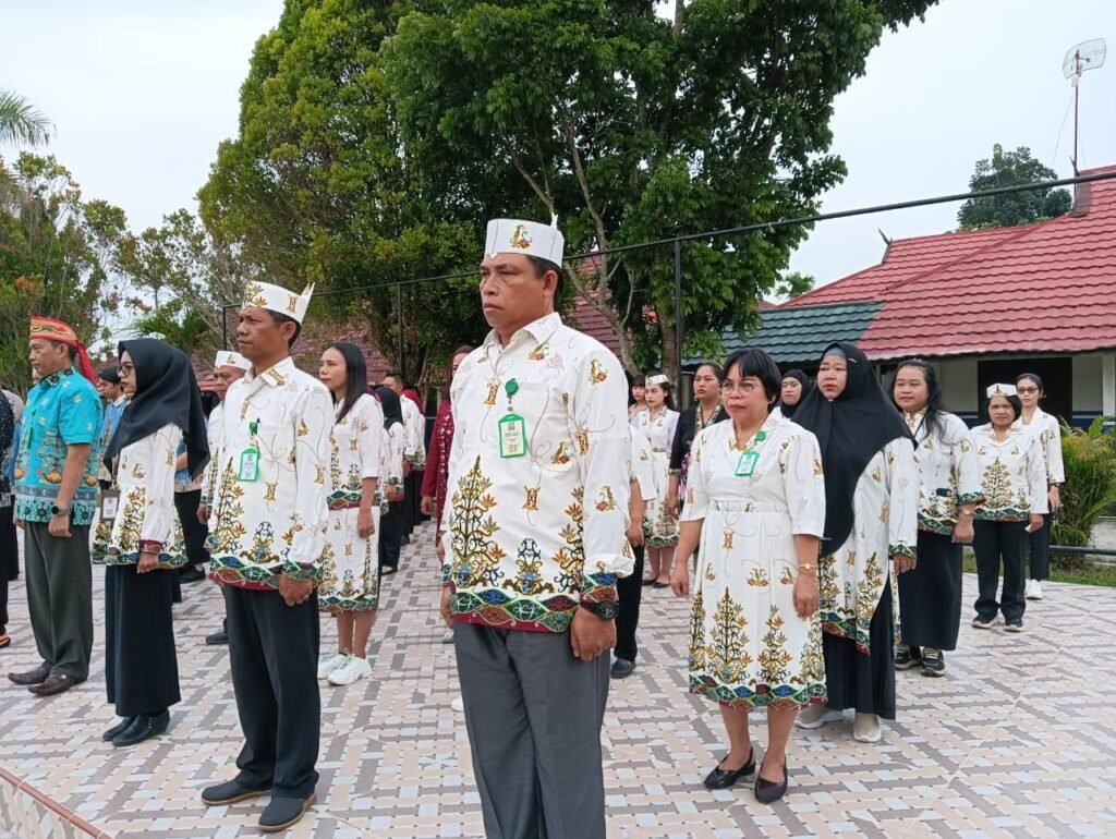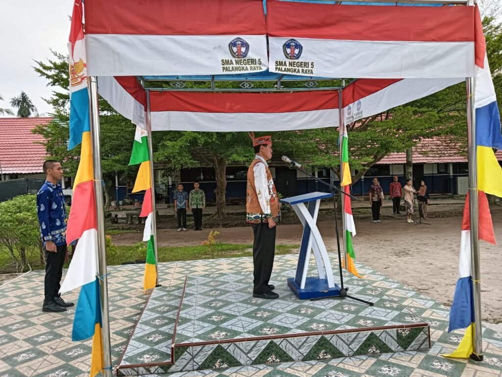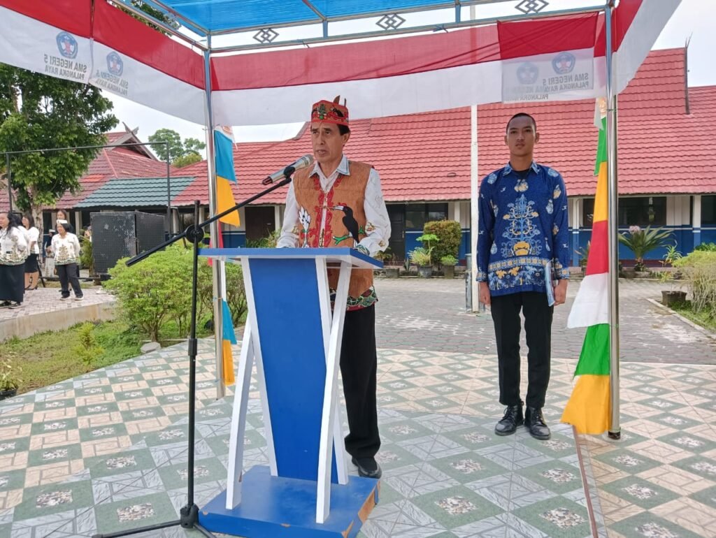 Warna-warna pakaian adat dan batik Nusantara menghiasi halaman SMAN 5 Palangka Raya. Keragaman rupa pakaian yang dikenakan para peserta upacara Hari Pendidikan Nasional (Hardiknas) pada Jumat, 2 Mei 2025 itu seperti menggambarkan partisipasi semua anak bangsa untuk mewujudkan pendidikan bermutu.