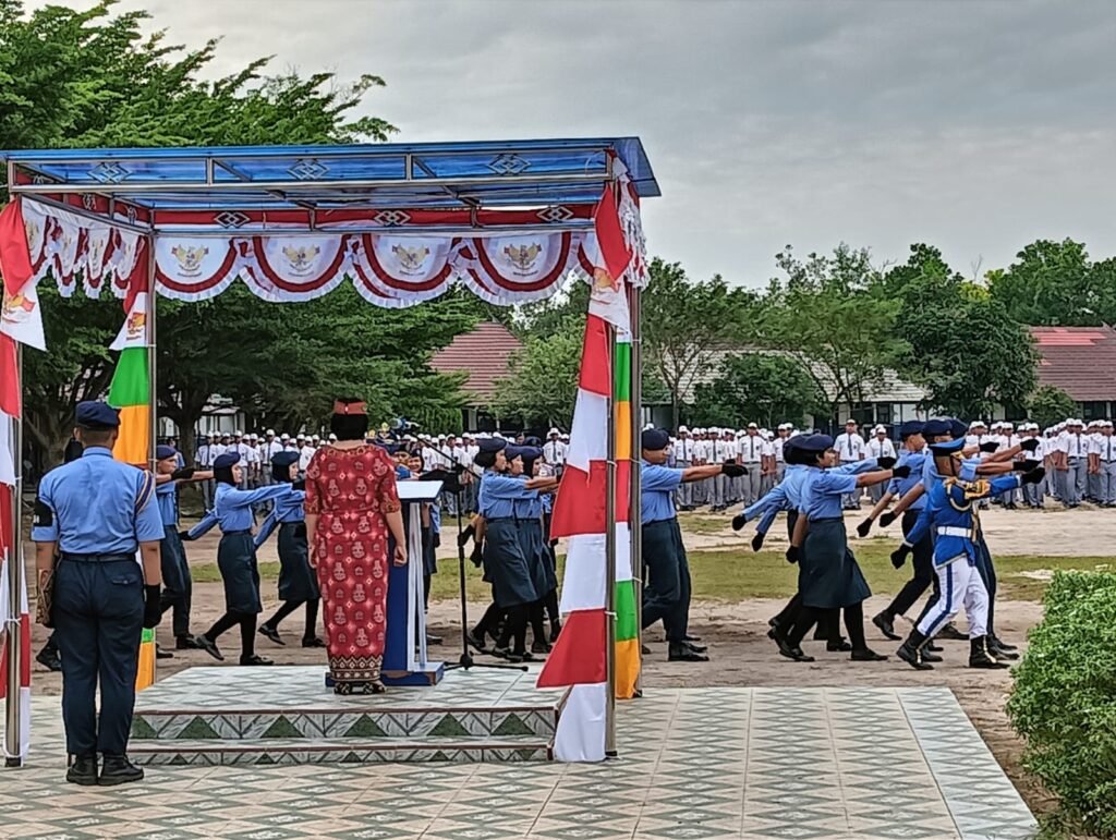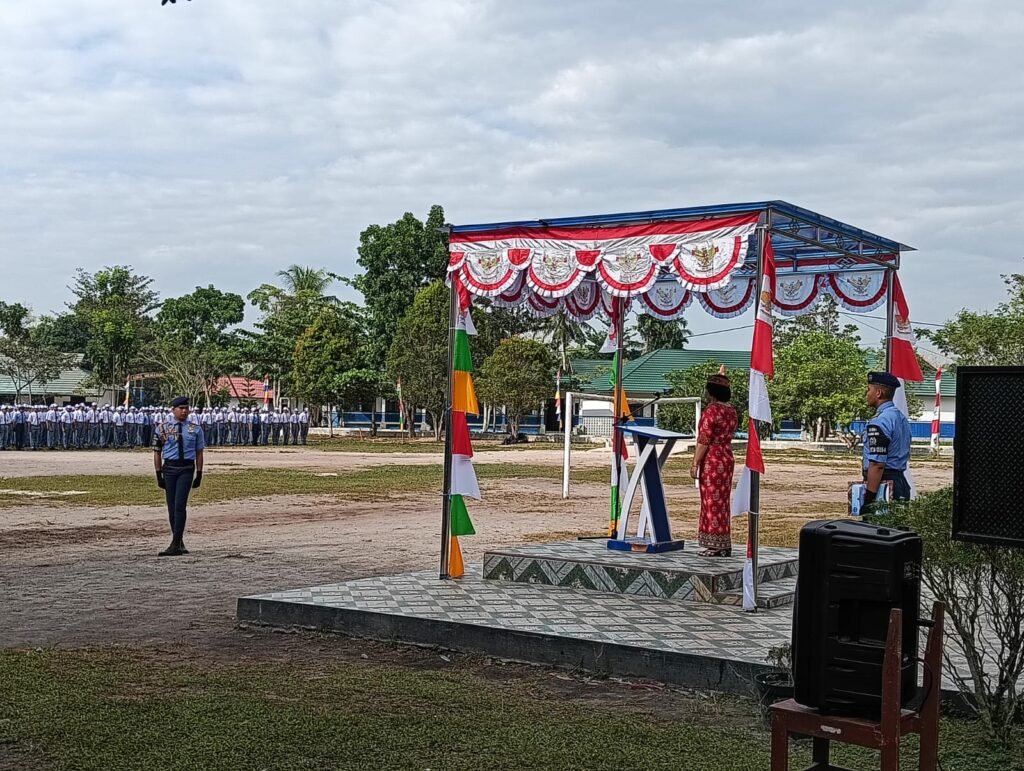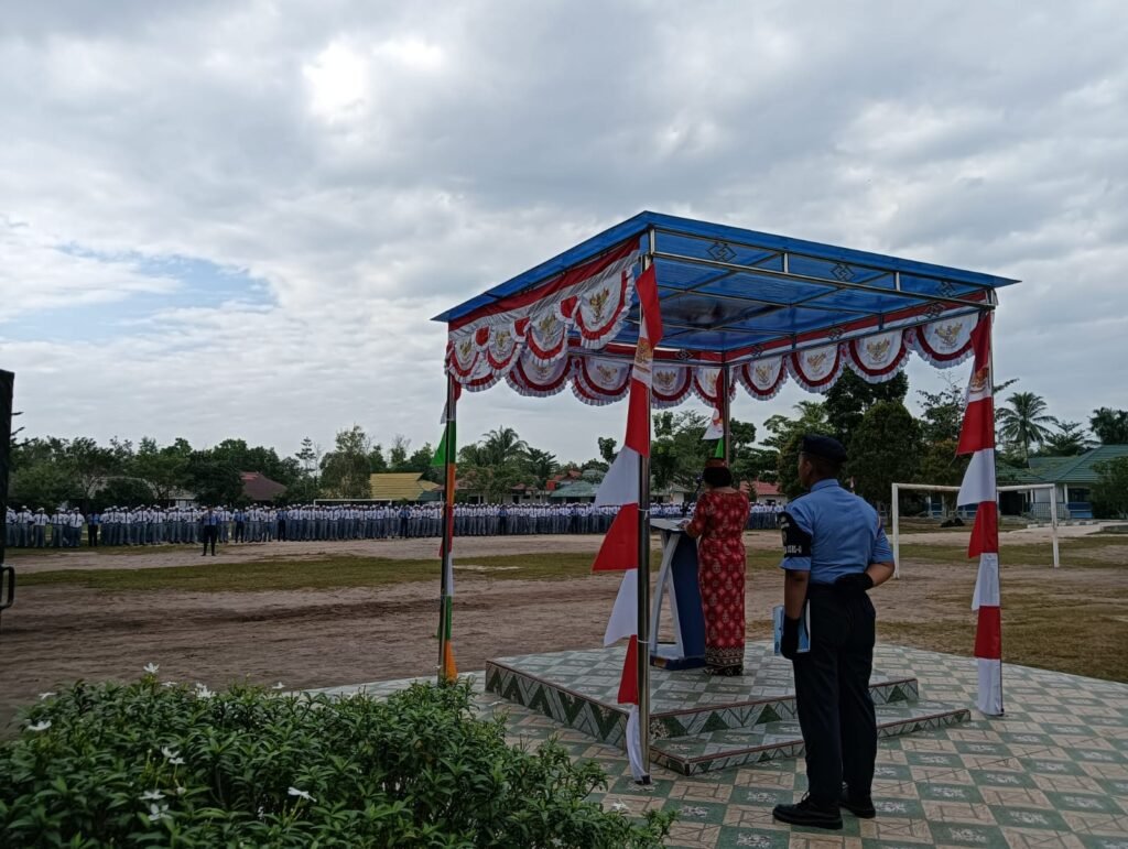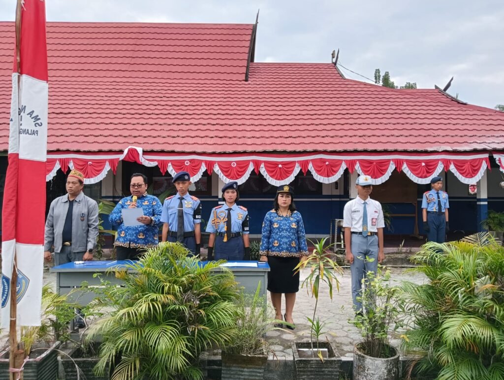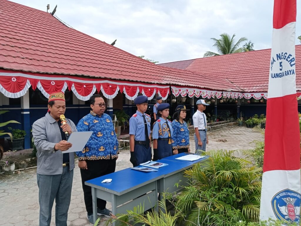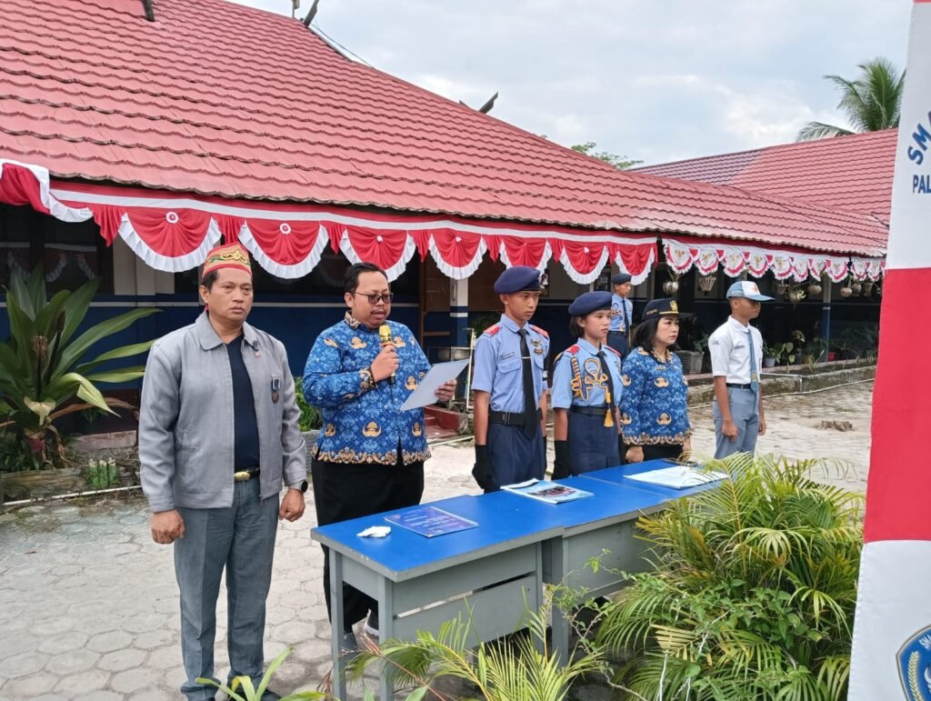 Pembina upacara, Wakasek Kurikulum, Kasih, S.P.A.K., mewakili Kepala Sekolah, Drs. M. Ramli, M.Pd., yang tengah mengikuti upacara di halaman Disdikprov Kalteng. Dalam amanatnya, ia membacakan pidato Gubernur Kalimantan Tengah, H. Sugianto Sabran.