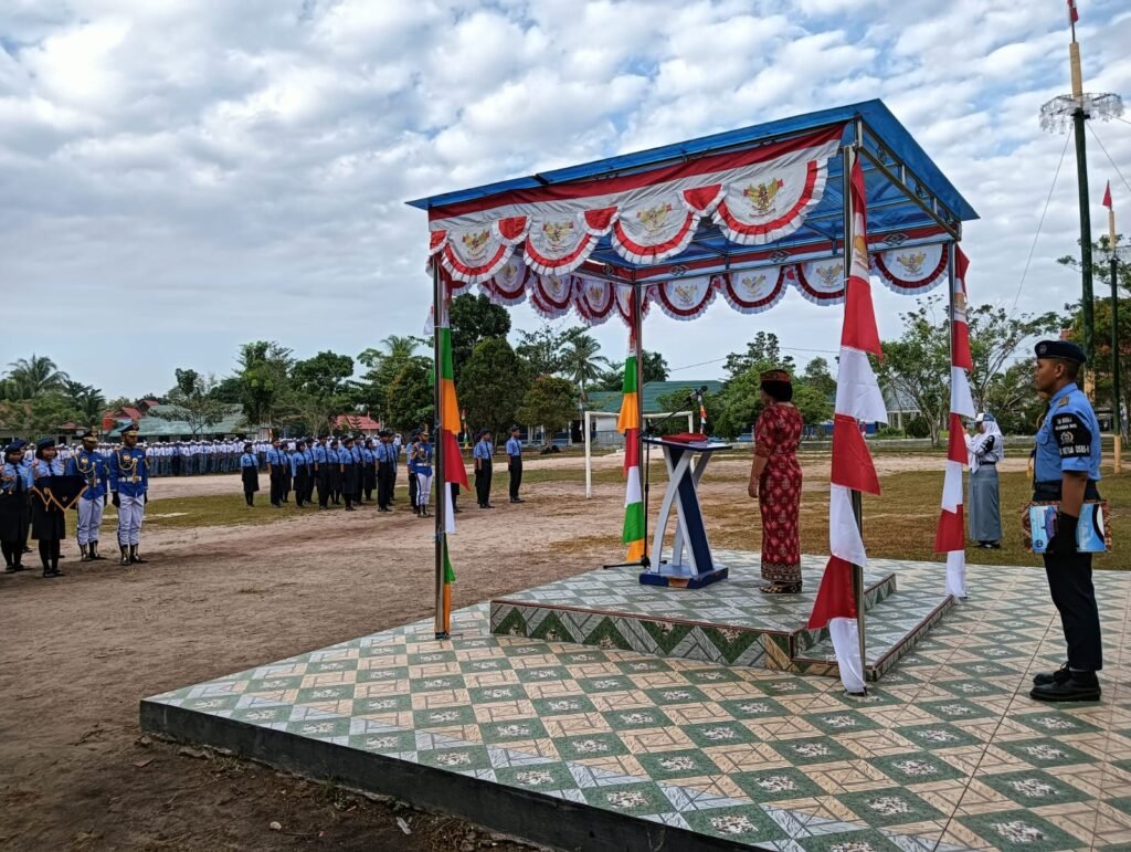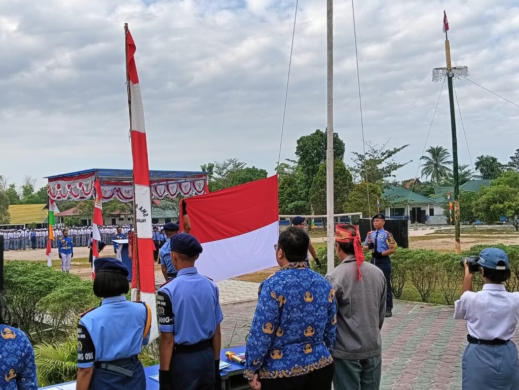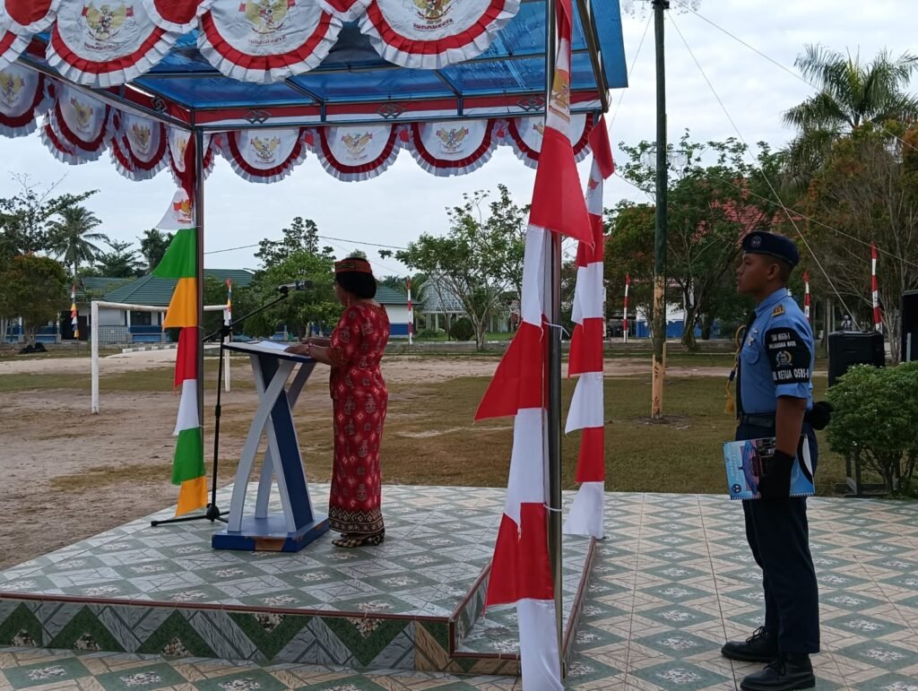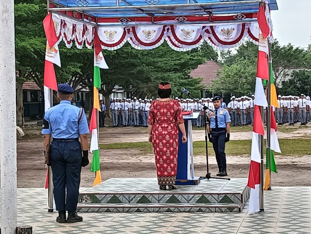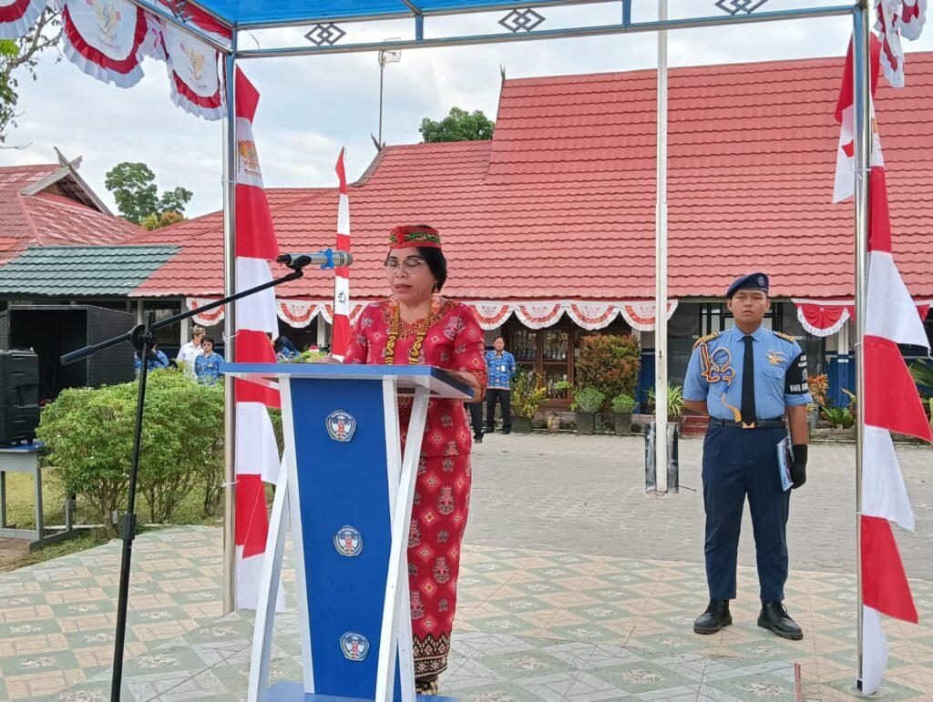 Pembina upacara, Wakasek Kurikulum, Kasih, S.P.A.K., mewakili Kepala Sekolah, Drs. M. Ramli, M.Pd., yang tengah mengikuti upacara di halaman Disdikprov Kalteng. Dalam amanatnya, ia membacakan pidato Gubernur Kalimantan Tengah, H. Sugianto Sabran.