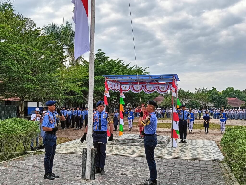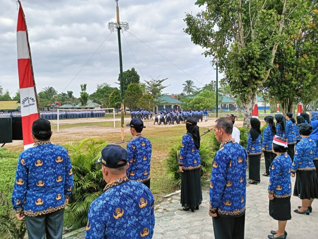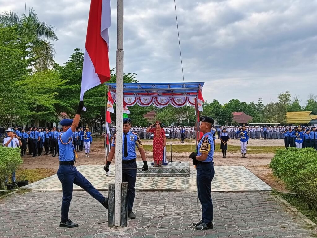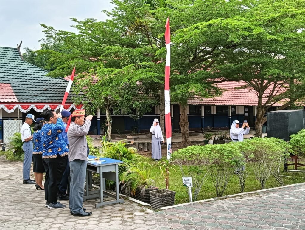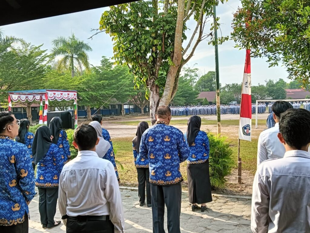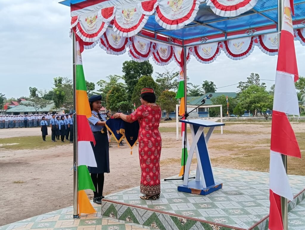 Pembina upacara, Wakasek Kurikulum, Kasih, S.P.A.K., mewakili Kepala Sekolah, Drs. M. Ramli, M.Pd., yang tengah mengikuti upacara di halaman Disdikprov Kalteng. Dalam amanatnya, ia membacakan pidato Gubernur Kalimantan Tengah, H. Sugianto Sabran.