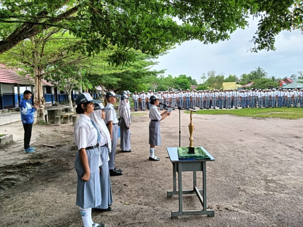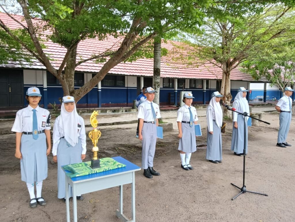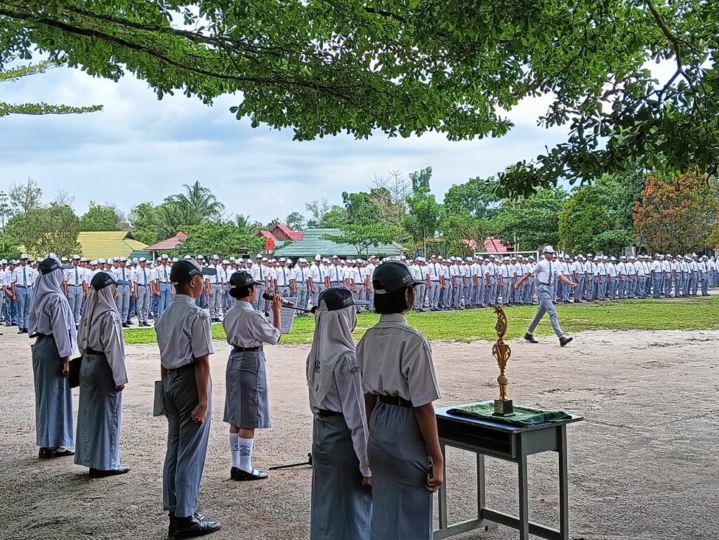 Rintik gerimis pagi di bawah langit mendung tidak menghalangi upacara bendera. Apel Senin, 21 Oktober 2024 tetap berlangsung khidmat dan tertib. Rangkaian upacara berlangsung lancar.
