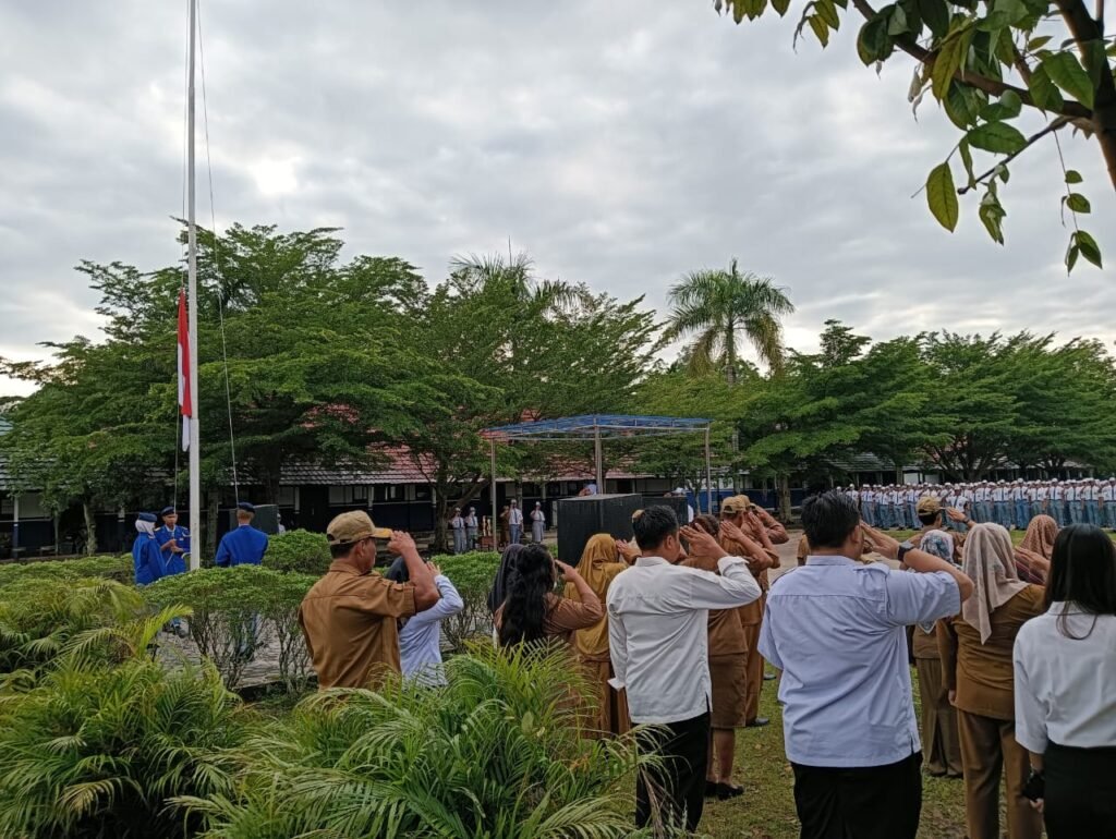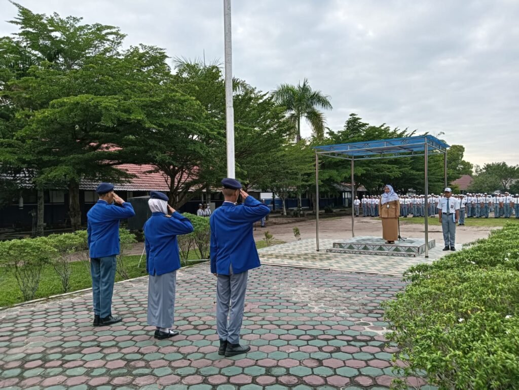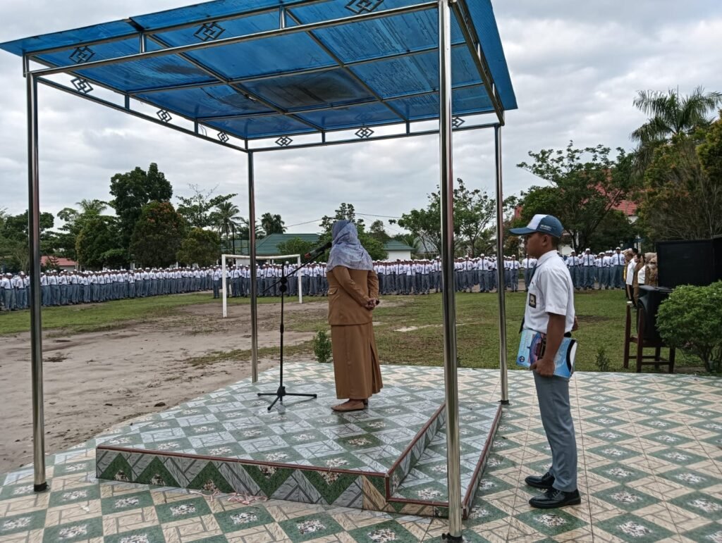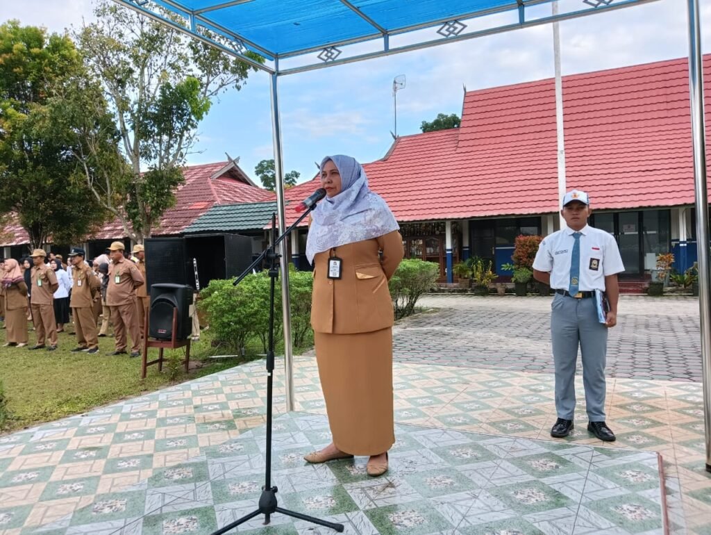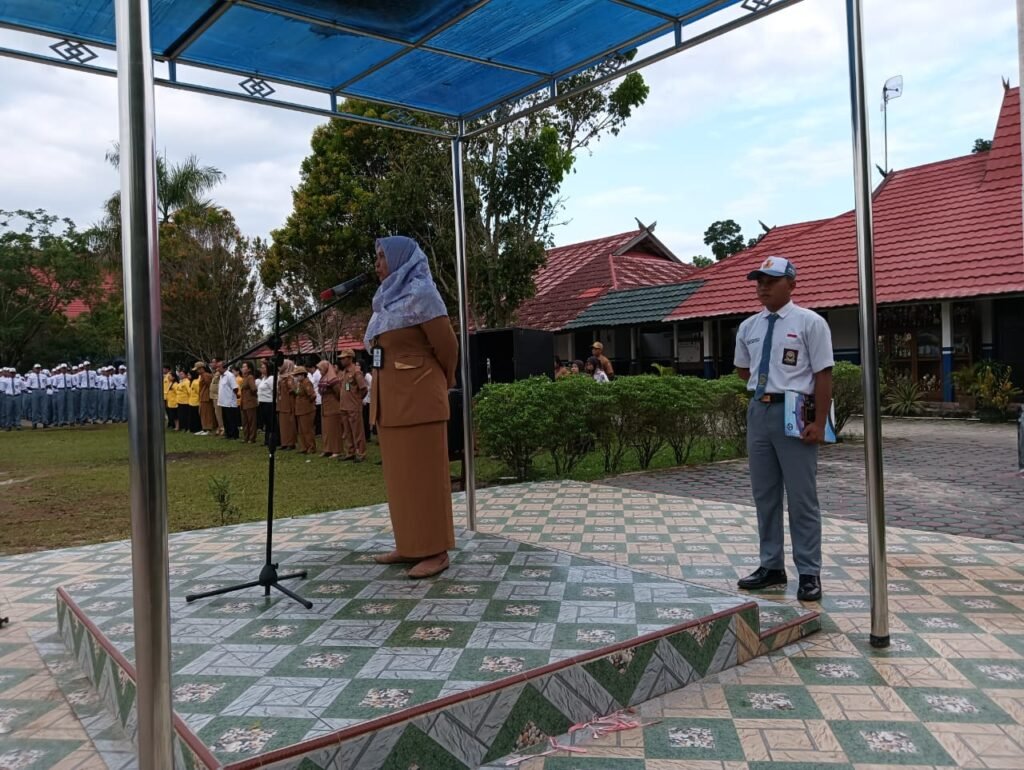 Pembina upacara, Hamidah, S.Pd., menyampaikan amanat di depan peserta upacara pada Senin, 2 September 2024 di halaman SMAN 5 Palangka Raya. Lebih seribu siswa, puluhan guru dan staf serta mahasiswa PPL UPR menyimak khidmat tegak dalam barusan. Cuaca pagi yang cerah hangat menambah semangat mereka mengikuti upacara dan siap mengawali kegiatan pembelajaran.