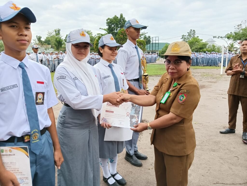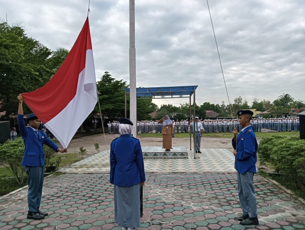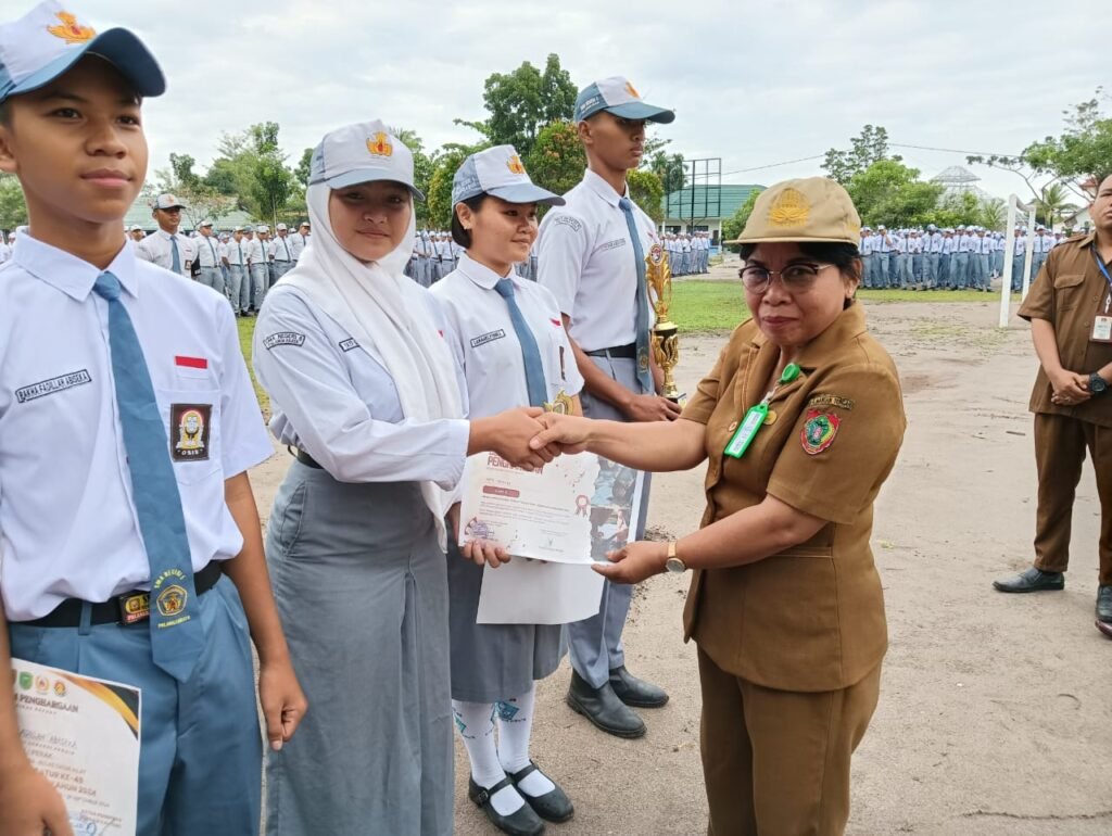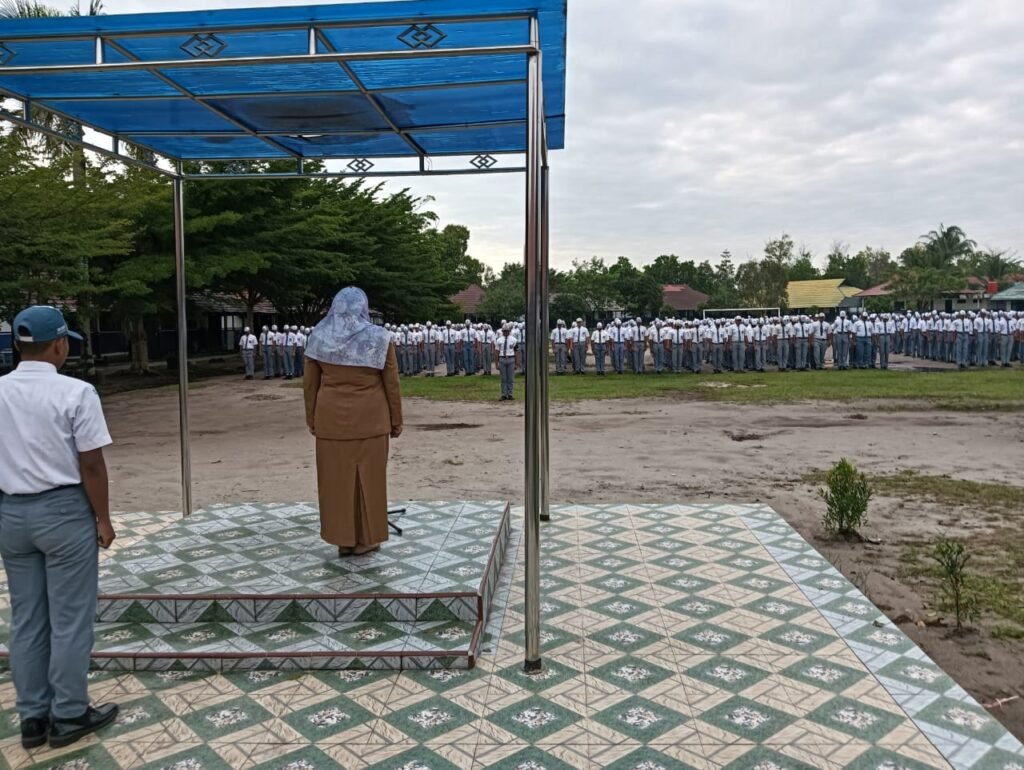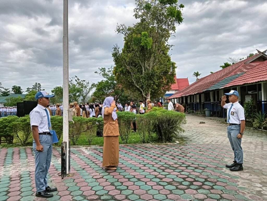 Pembina upacara, Hamidah, S.Pd., menyampaikan amanat di depan peserta upacara pada Senin, 2 September 2024 di halaman SMAN 5 Palangka Raya. Lebih seribu siswa, puluhan guru dan staf serta mahasiswa PPL UPR menyimak khidmat tegak dalam barusan. Cuaca pagi yang cerah hangat menambah semangat mereka mengikuti upacara dan siap mengawali kegiatan pembelajaran.