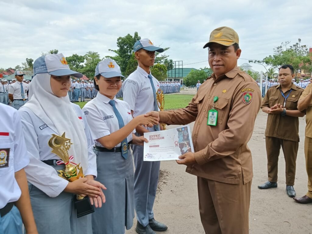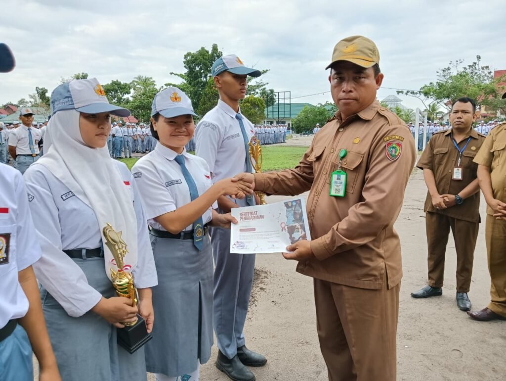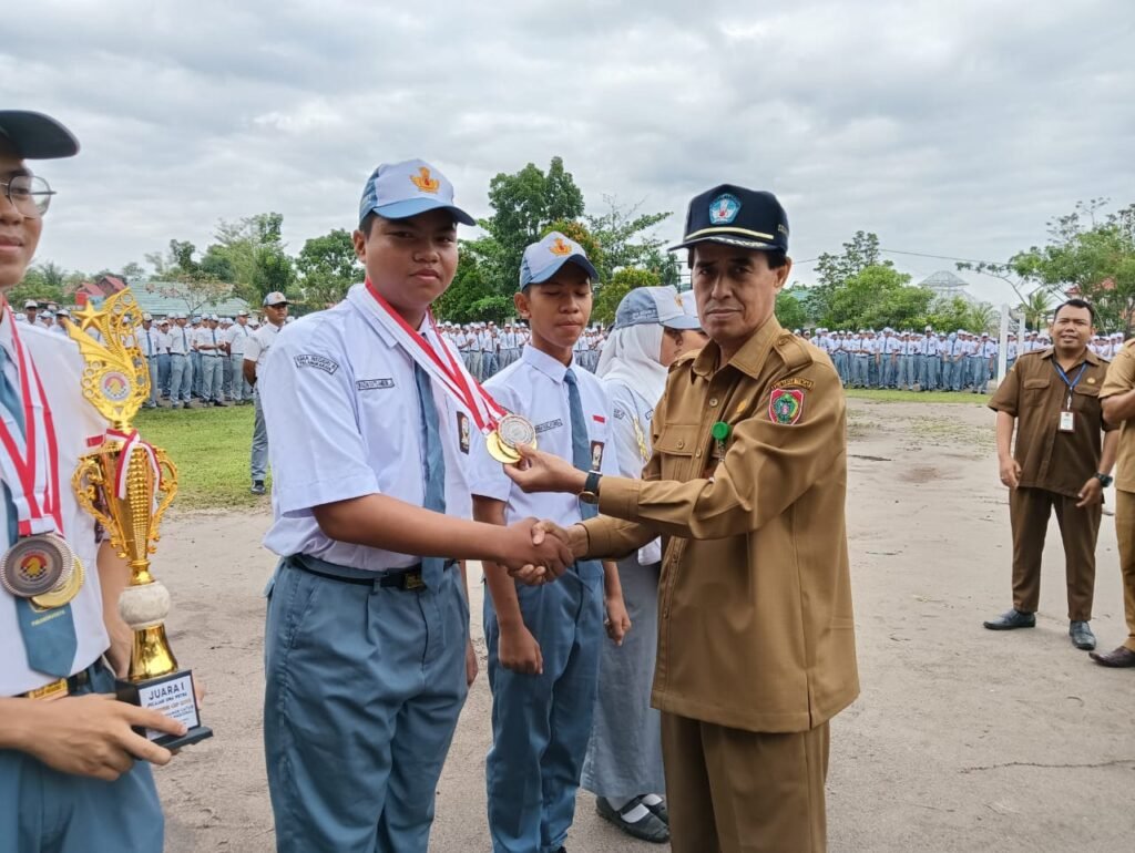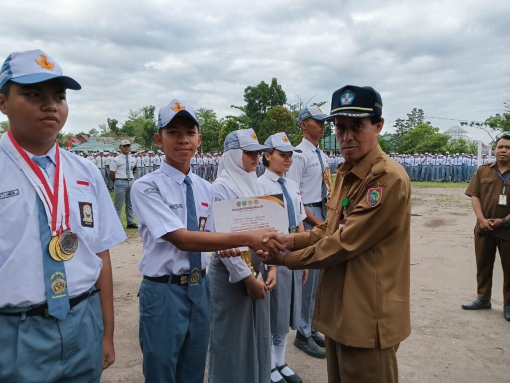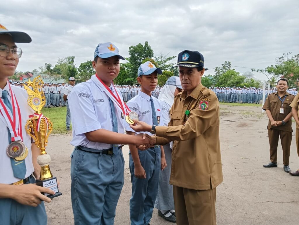 Acara tambahan sesuai upacara adalah penyerahan medali hasil prestasi siswa dalam kompetisi catur, manyipet, dan mengaruhi di beberapa instansi. Maka tepuk tangan dan aplaus semangat pun membahana. (LJ)