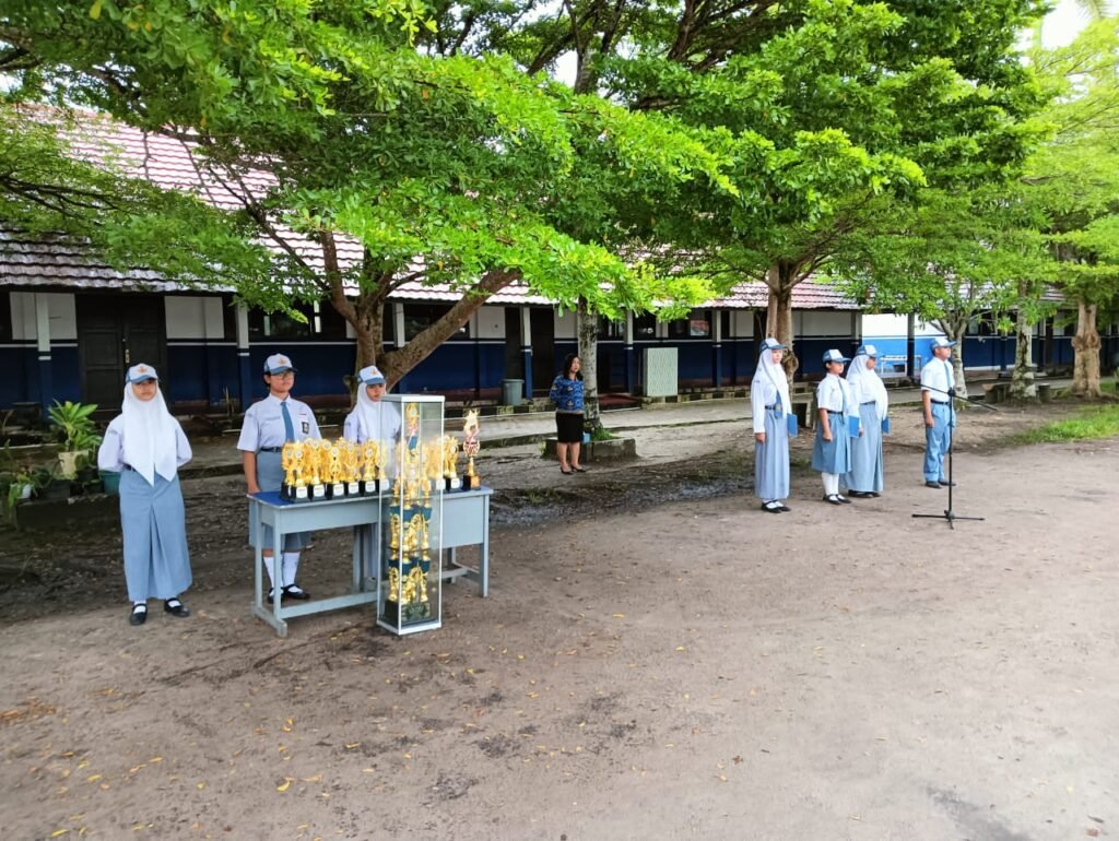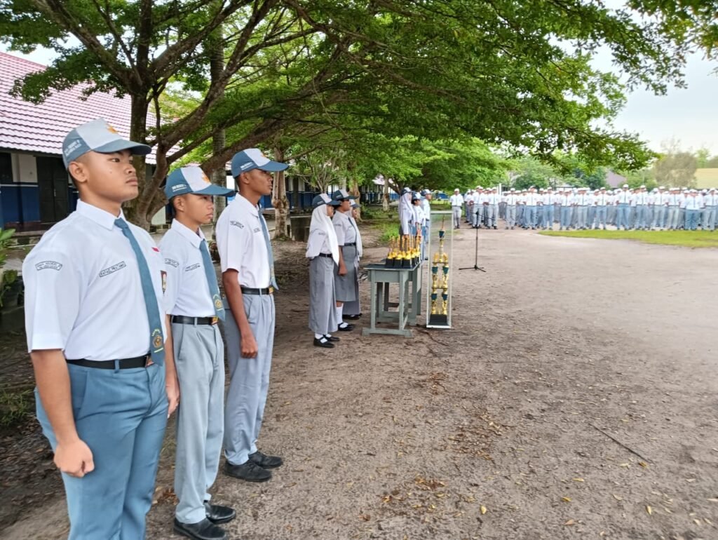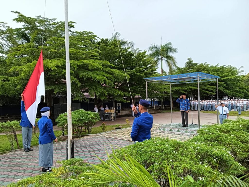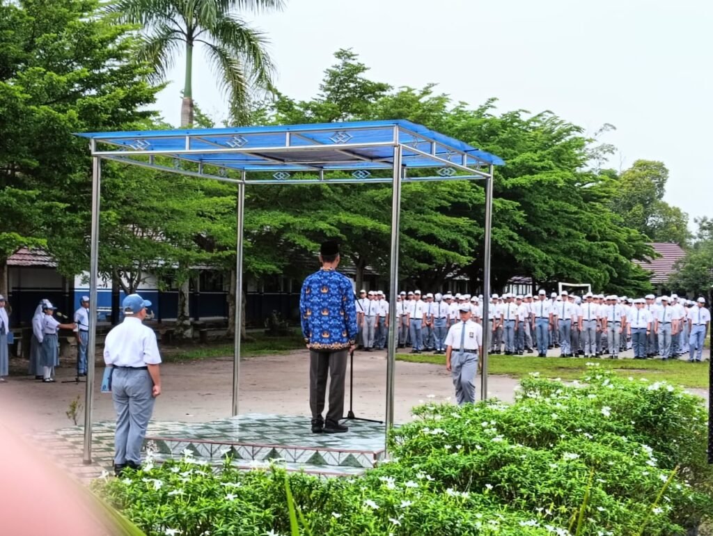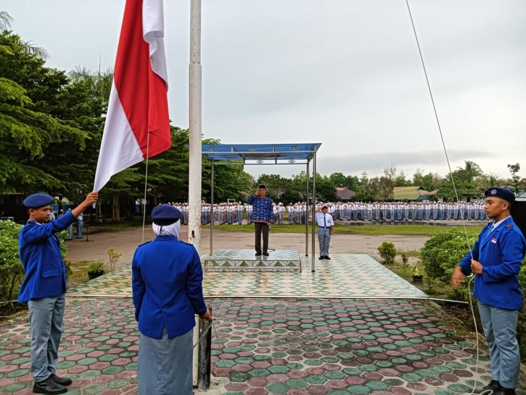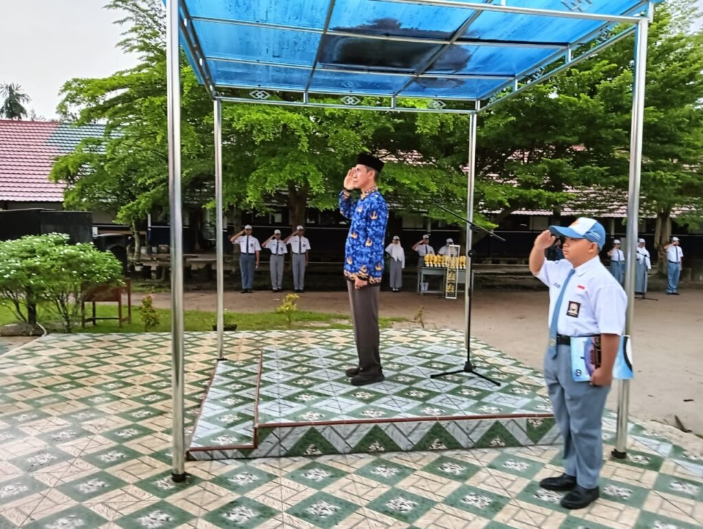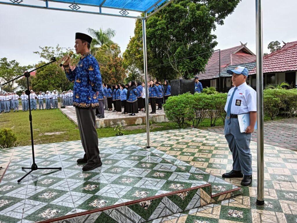 Mendung bergayut di langit tak membuat semangat menyurut. Upacara bendera pagi Senin, 17 Februari 2025 tetap berlangsung meskipun rintik hujan akhirnya berderai menitik.