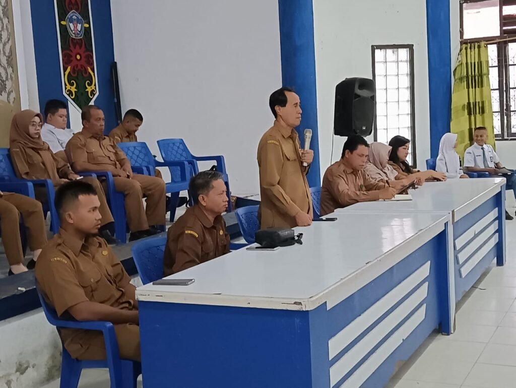 Pembukaan MPLS yang direncanakan di lapangan pun dialihkan ke aula. Kepala SMAN 5 Palangka Raya, Drs. M. Ramli, M.Pd., memberikan sambutan sebelum membuka secara resmi.