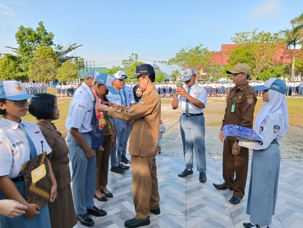 “Saat ini siswa sekolah kita lebih dari seribu seratus. Ini merupakan potensi yang besar. Silakan semua belajar kreatif dan berkompetisi secara sportif untuk menjadi siswa yang berprestasi terbaik. Mari Masuki Tahun Ajaran 2025/2026 dengan semangat untuk berubah semakin baik.’