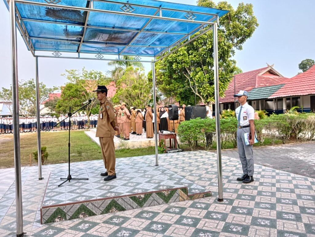 Inilah upacara pertama awal tahun ajaran 2025/2026. Senin, 14 Juli 2025 di halaman sekolah lebih seribu seratus siswa dan puluhan guru serta staf berbaris rapi. Para siswa kelas tampak berseragam putih abu-abu, kecuali siswa kelas X yang tampak masih mengenakan seragam SMP/MTs.