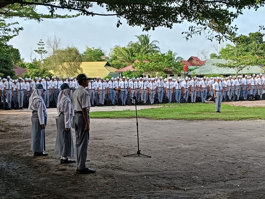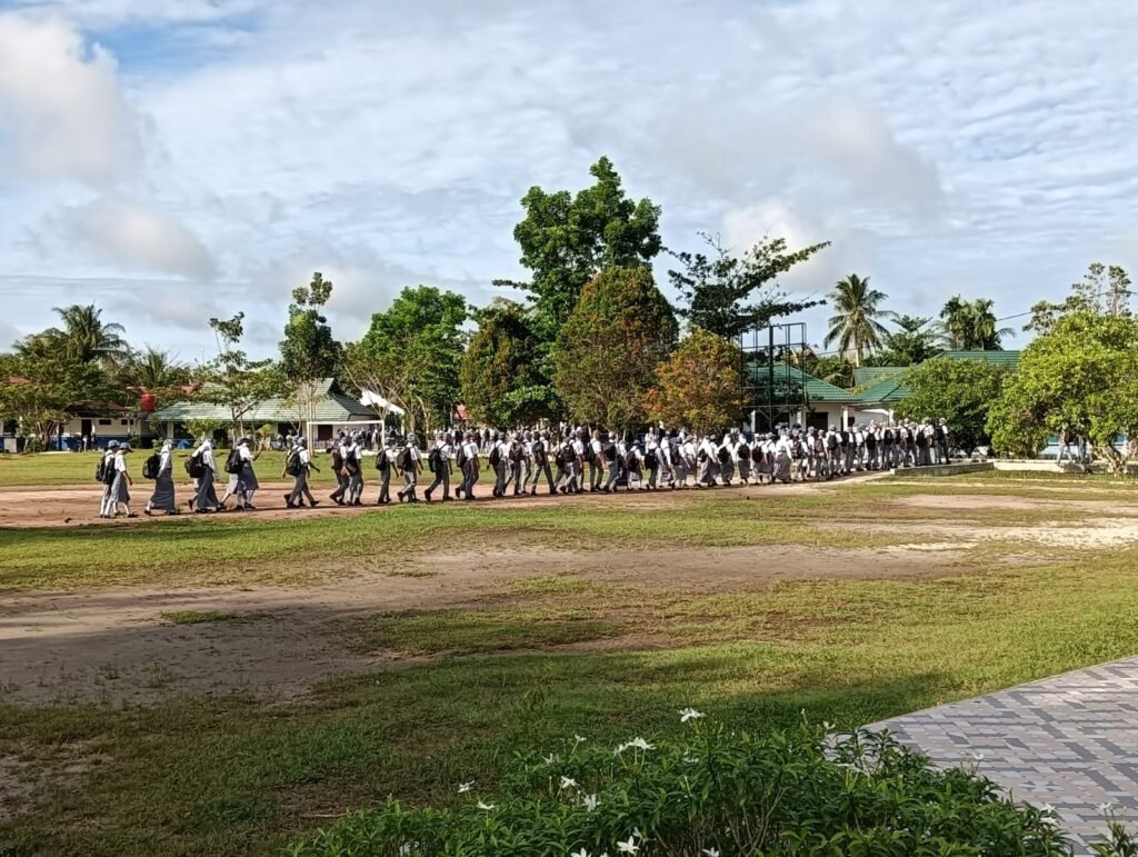 Usai upacara, siswa pun masuk kelas. Mereka segera bersiap mengikuti Penilaian Sumatif Akhir Jenjang yang berlangsung secara daring. (LJ)