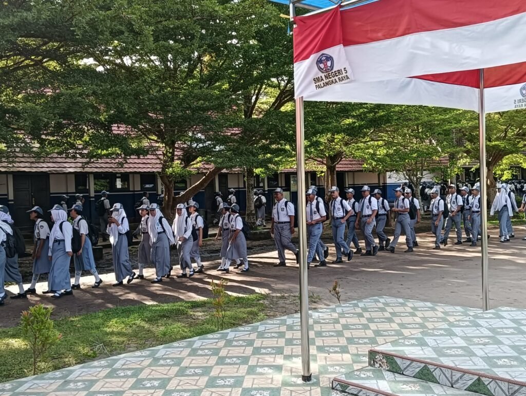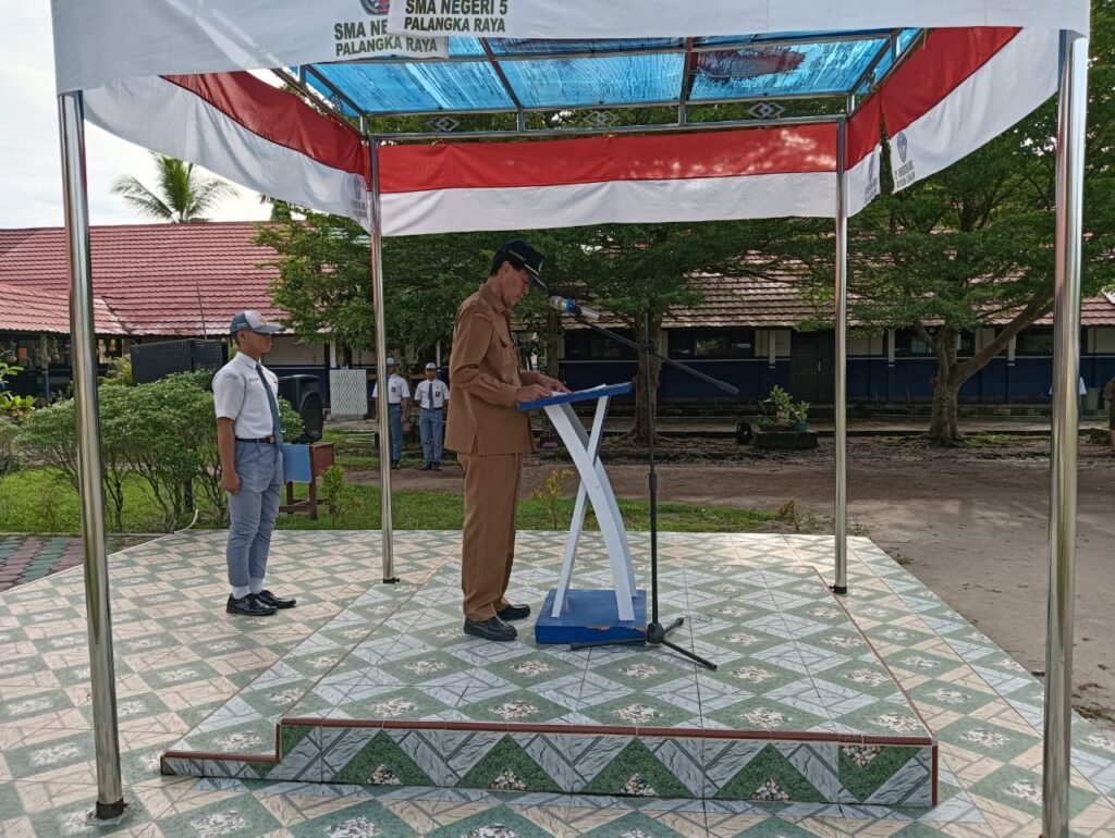 Upacara Peringatan Hari Lahir Pancasila 1 Juni digelar SMAN 5 Palangka Raya pada Senin, 2 Juni 2025 pukul 06.30. Para pendidik, tenaga kependidikan, dan peserta didik mengikuti upacara peringatan salah satu hari besar nasional itu dengan khidmat.
