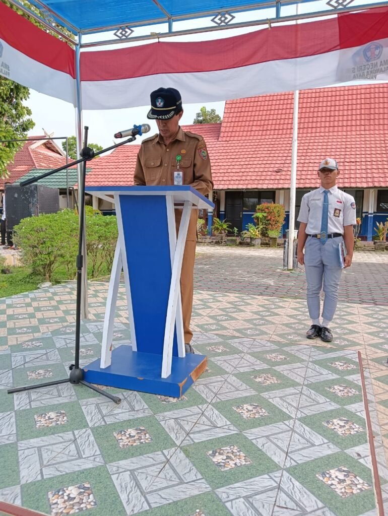 Naskah pidato Kepala Badan Pembinaan Ideologi Pancasila (BPIP) Republik Indonesia, Yudian Wahyudi, dibacakan kepala sekolah, Drs. M. Ramli, M.Pd. yang bertindak sebagai pembina upacara.