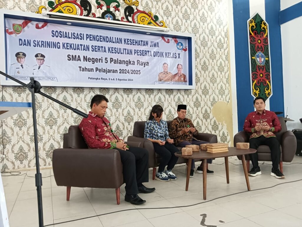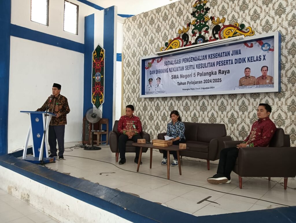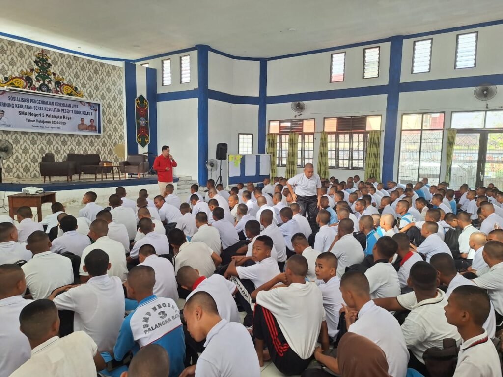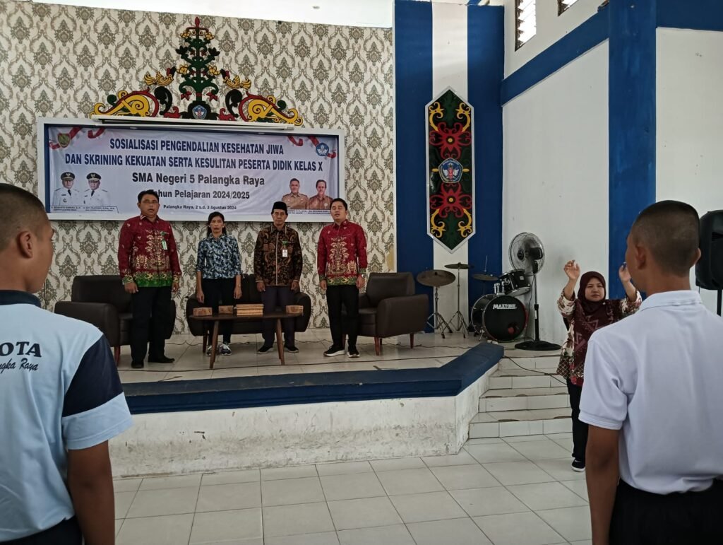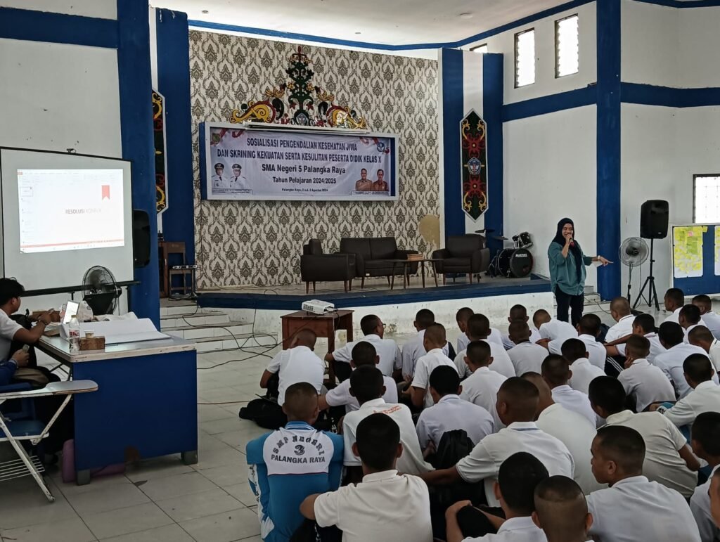 Lebih dari 300 siswa kelas X SMAN 5 Palangka Raya mengikuti Sosialisasi Pengendalian Kesehatan Jiwa dan Skrining Kekuatan serta Kesulitan. Mereka mengikuti kegiatan di aula. Kegiatan ini berlangsung dua hari pada Jumat–Sabtu, 2–3 Agustus 2024.