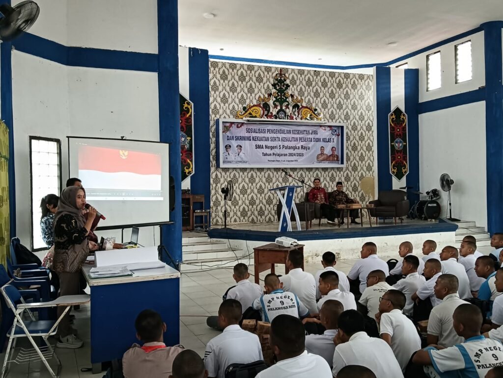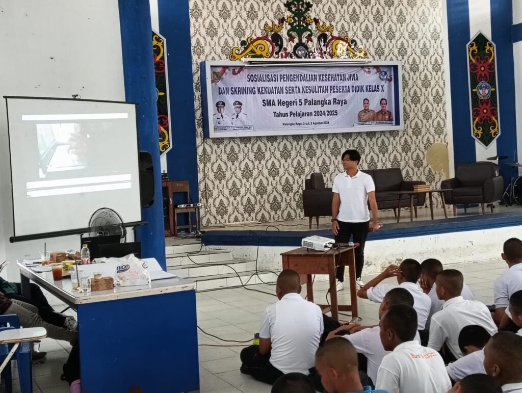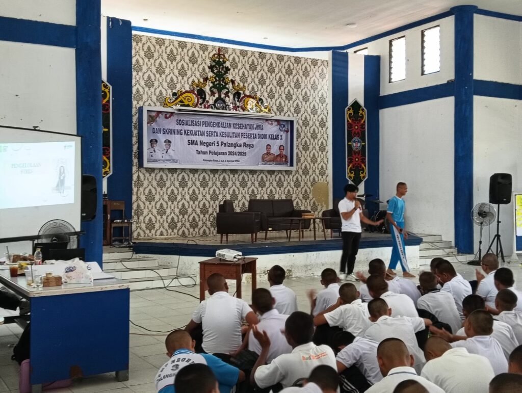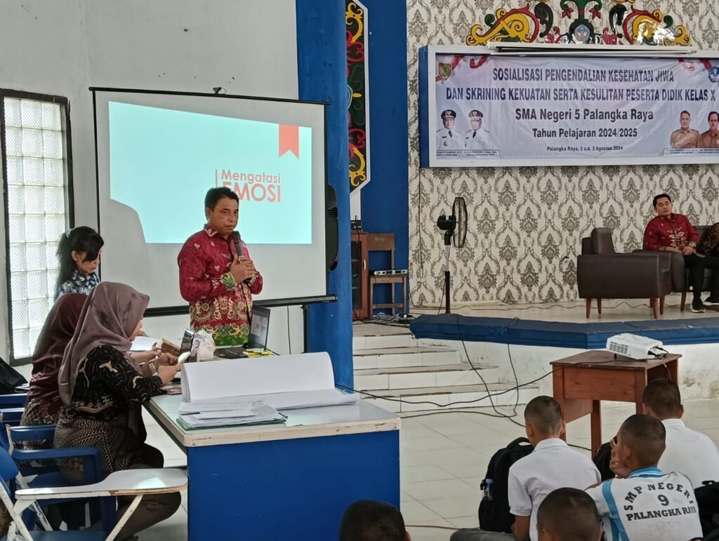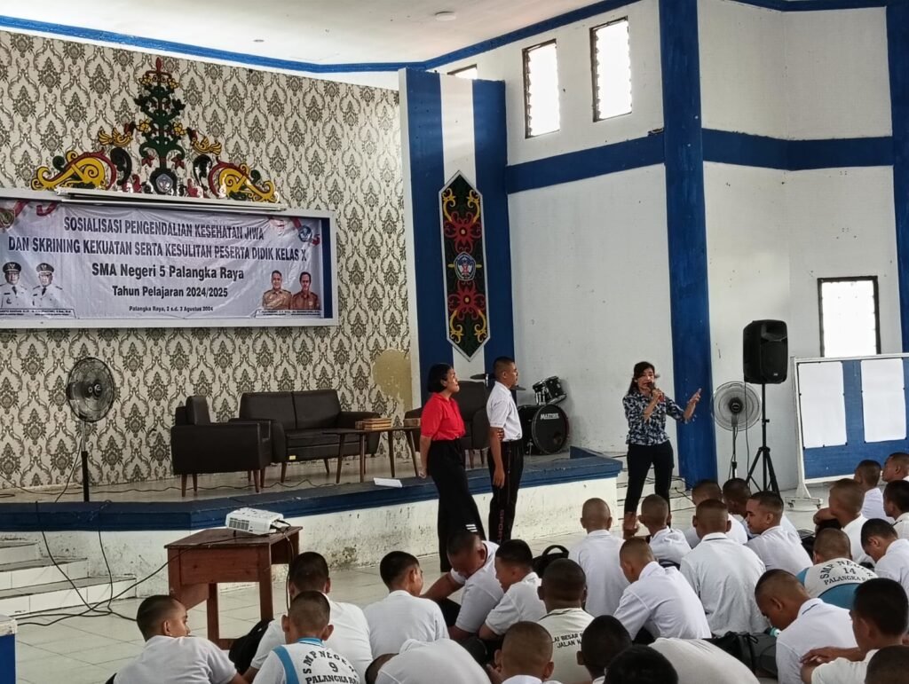 Lebih dari 300 siswa kelas X SMAN 5 Palangka Raya mengikuti Sosialisasi Pengendalian Kesehatan Jiwa dan Skrining Kekuatan serta Kesulitan. Mereka mengikuti kegiatan di aula. Kegiatan ini berlangsung dua hari pada Jumat–Sabtu, 2–3 Agustus 2024.