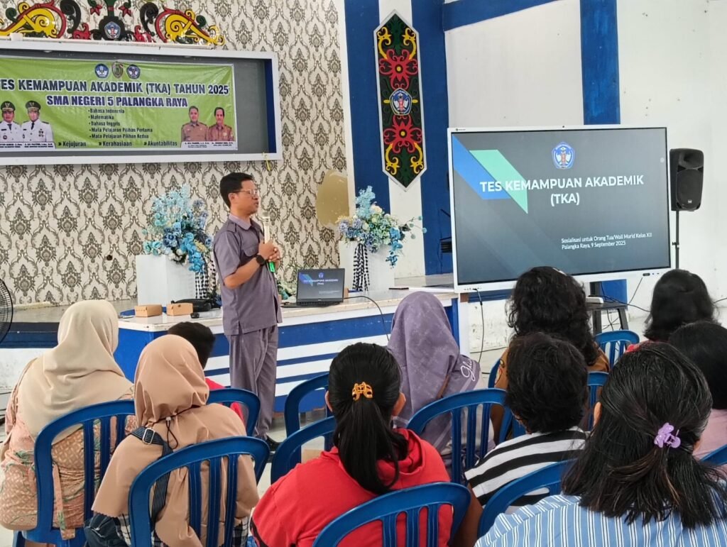 Sejalan dengan itu sosialisasi TKA untuk orang tua/wali murid kelas XII pun dilakukan. Kegiatan ini berlangsung di aula SMAN 5 Palangka pada Selasa, 9 September 2025.