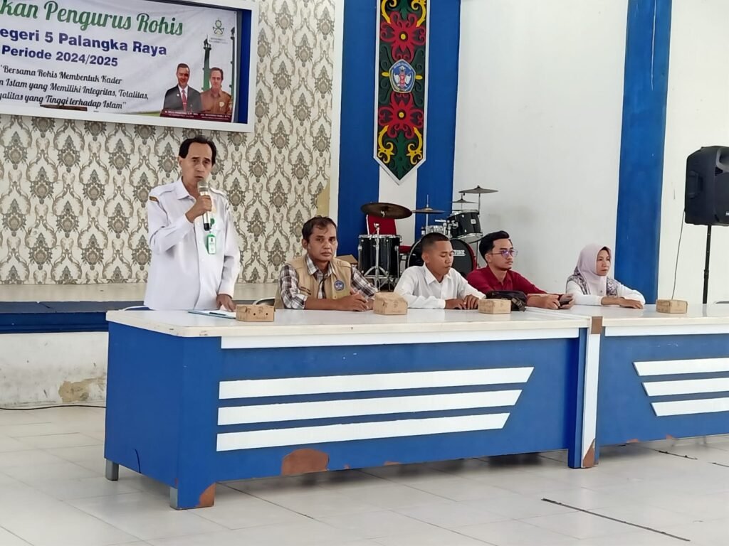 Pengurus Rohis (Rohani Islam) SMAN 5 Palangka Raya y dilantik pada Rabu, 31 Januari 2024. Kepala sekolah Drs. M. Ramli, M.Pd., berkenan melantik langsung pengurus Rohis yang baru di aula. Turut hadir dalam kegiatan itu Wakasek Humas dan Publikasi, Lukman Juhara. Pula tentu hadir guru Pendidikan Agama Islam, yaitu Laili Yusana, S.Sos.I., Ferdana Halim, S.Pd., dan Irfan, S.Pd. sebagai pembina Rohis.