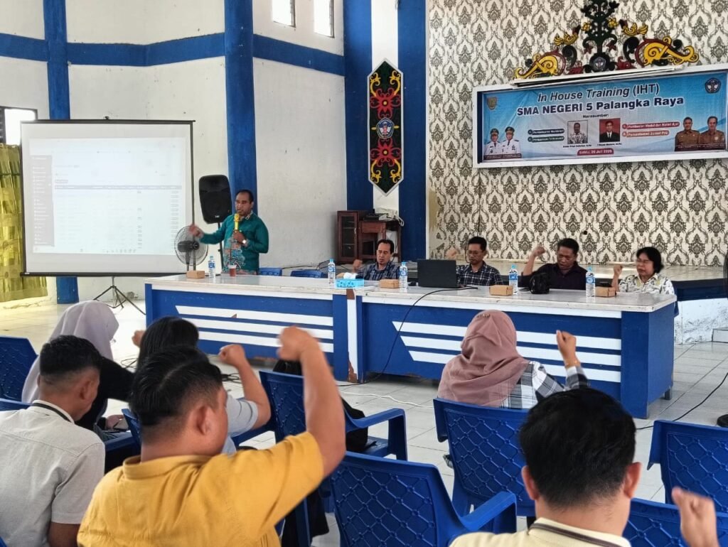 Semangat para guru SMA Negeri 5 Palangka Raya tampak berbinar pada Sabtu, 26 Juli 2025. Antusiasme mereka tampak saat mengikuti pelatihan internal (In House Training/IHT) di aula. Hari libur pembelajaran bagi siswa benar-benar bisa dimanfaatkan sebagai hari belajar bagi guru.