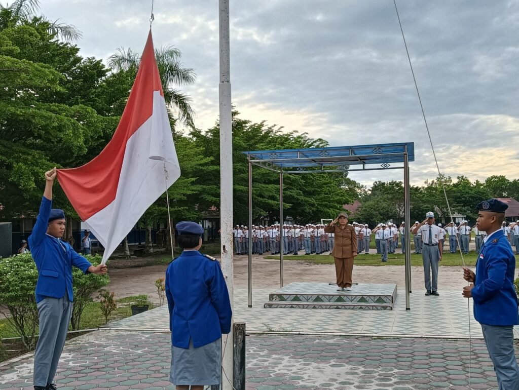 Pembina upacara, Truli Kinarsih, S.Pd., menyampaikan amanat dalam apel Senin, 3 Februari 2025 yang berlangsung dalam suasana pagi yang sejuk. Para siswa, dewan guru dan staf mengikuti upacara dengan tertib di lapangan SMAN 5 Palangka Raya.