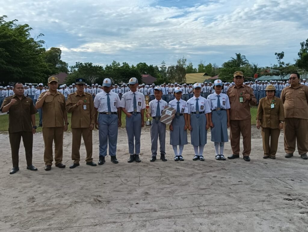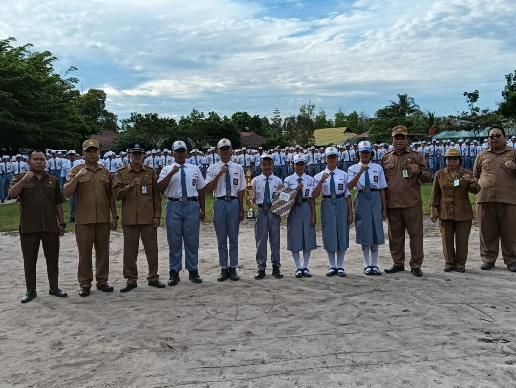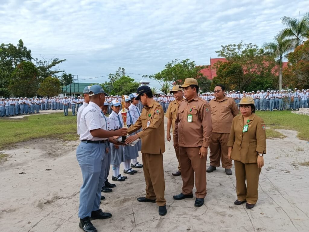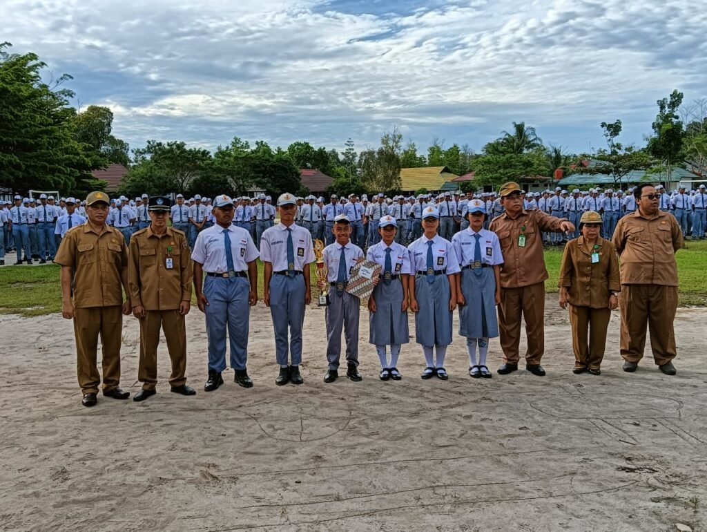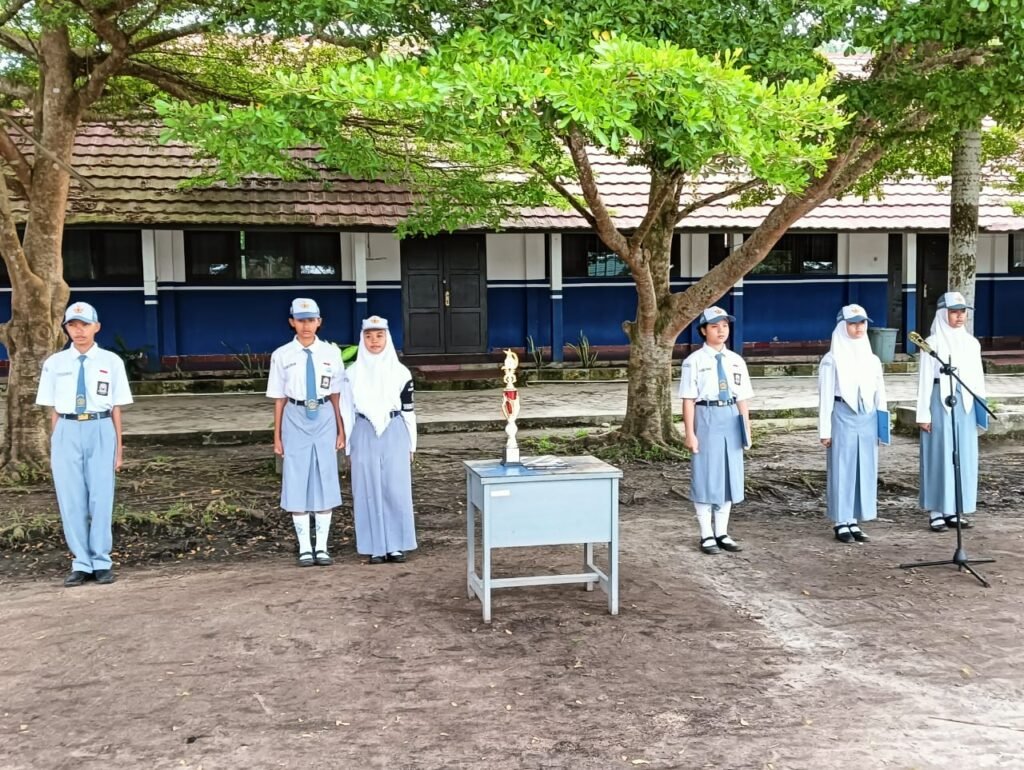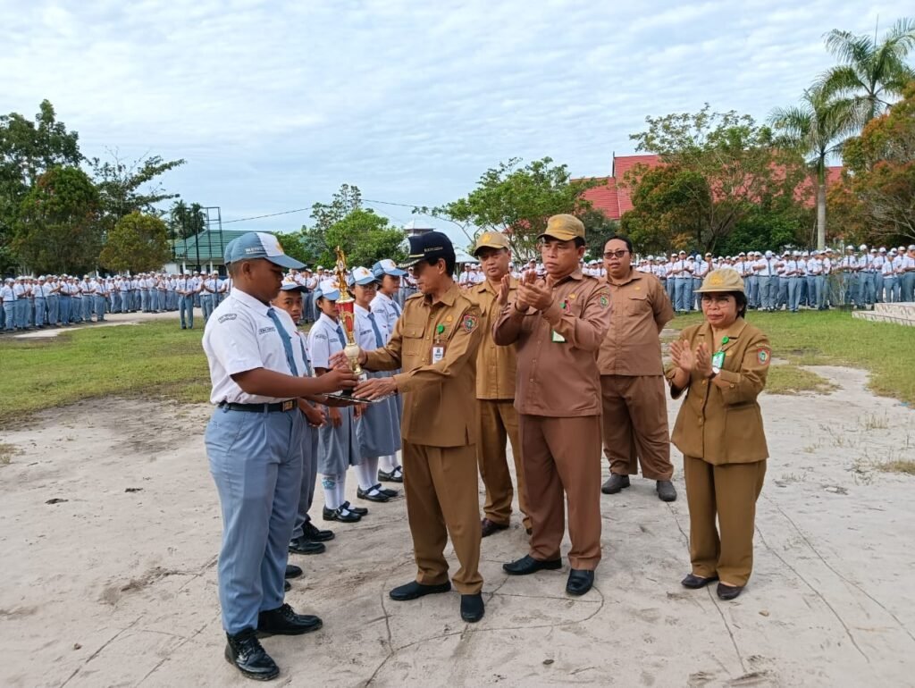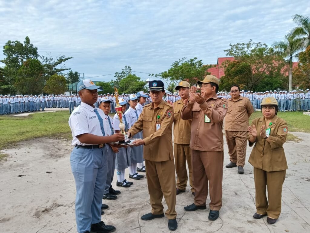 Acara tambahan usai upacara pun berlangsung berupa penyerahan piala dari siswa kepada pihak sekolah. Siswa Ekskul PMR menyerahkan piala Juara I Lomba Tenda Tingkat Wira LPP XXVI se- Kota Palangka Raya 2025. Kepala sekolah, Drs. M. Ramli didampingi para wakasek dan pembina ekskul pun menerimanya penuh apresiasi. Aplaus dari para peserta upacara pun terdengar memeriahkan suasana. (LJ)
