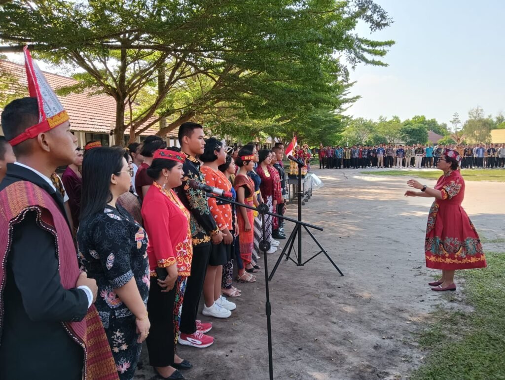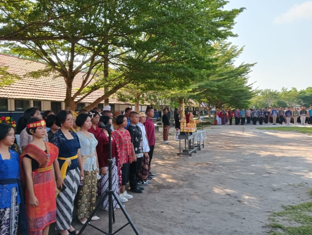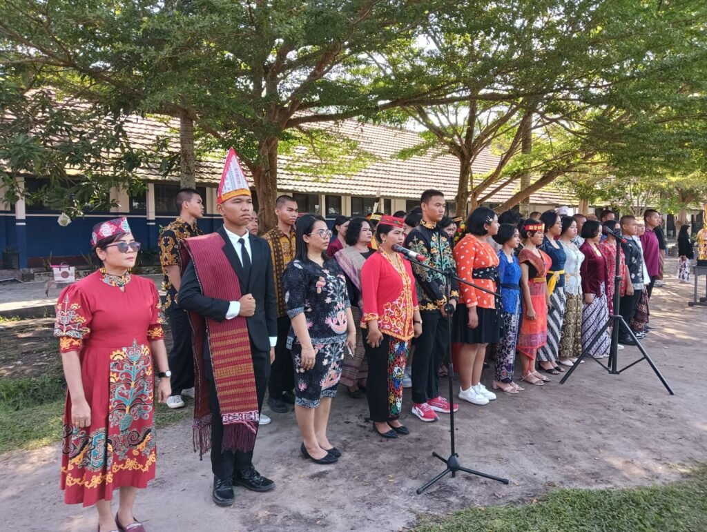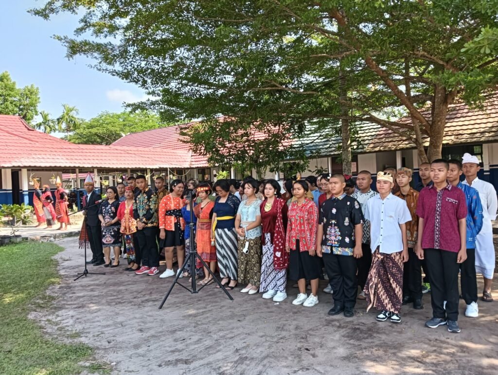 Upacara Peringatan Sumpah Pemuda digelar SMAN 5 Palangka Raya di halaman sekolah pada Senin, 28 Oktober 2024. Warna-warni keberagaman Indonesia pun tampak berlimpah. Mereka mengenakan pakaian adat nusantara. Sebagian lagi mengenakan aneka batik nusantara.