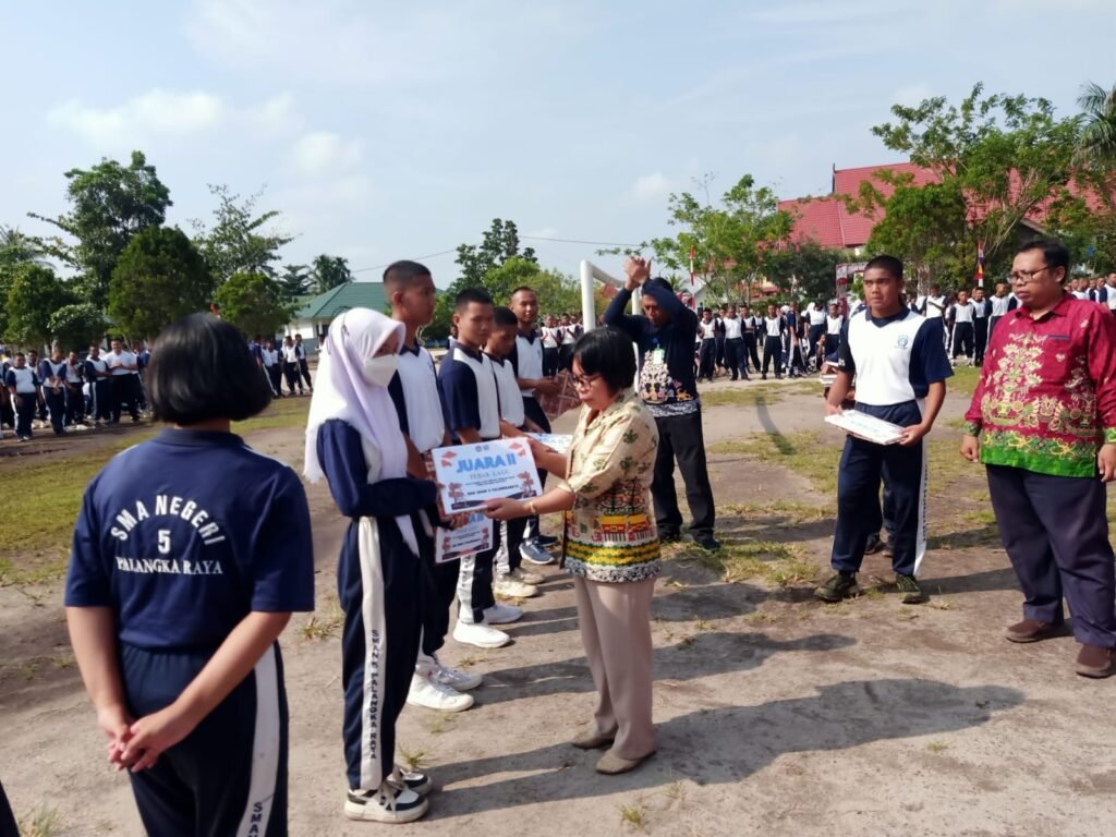 Kemeriahan pertandingan antarkelas (classmeeting) siswa SMAN 5 Palangka Raya pun berakhir. Kegiatan yang berlangsung selama seminggu sejak 14 Desember 2023 hari ini Kamis, 21 Desember 2023 resmi ditutup. Kepala sekolah, Drs. M. Ramli, M.Pd., menutupnya di halaman sekolah disaksikan para guru dan seluruh siswa yang hadir.