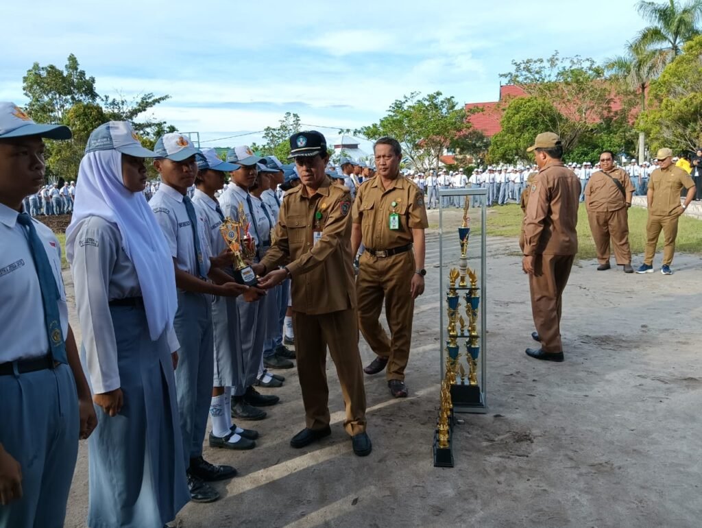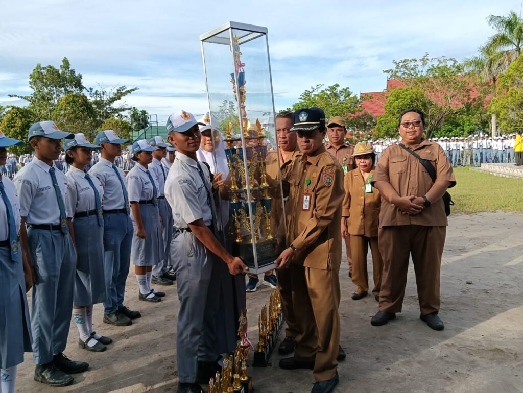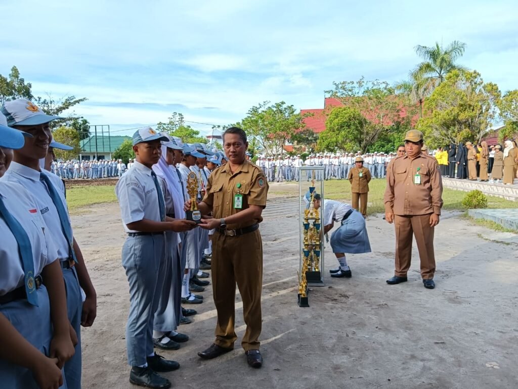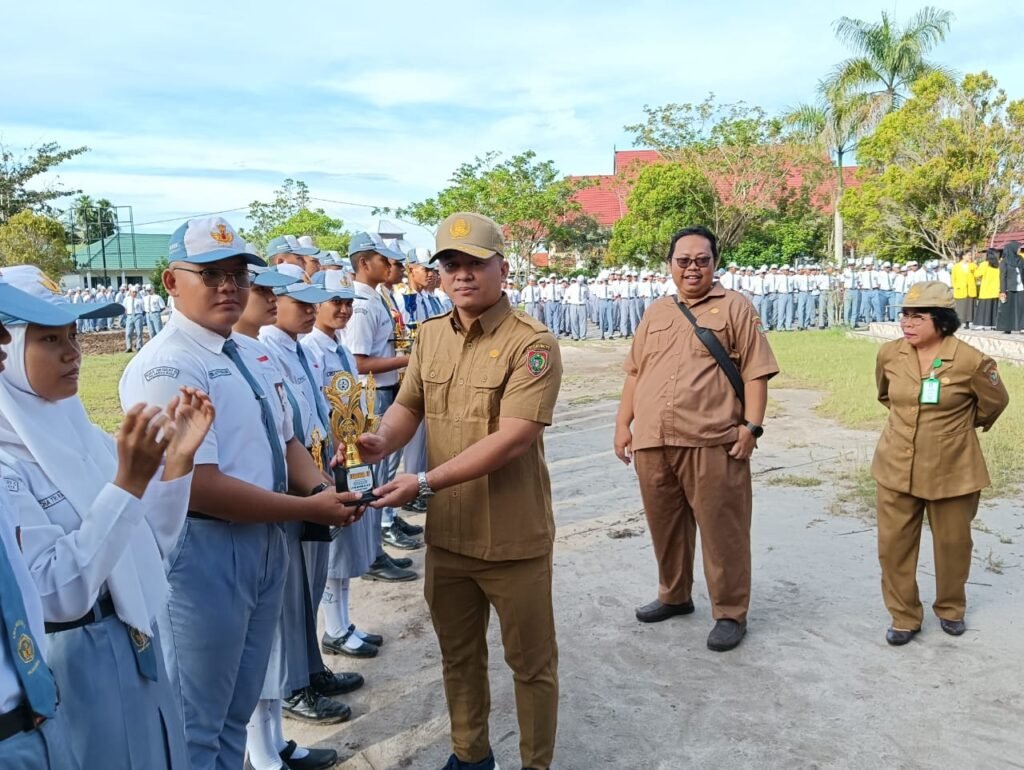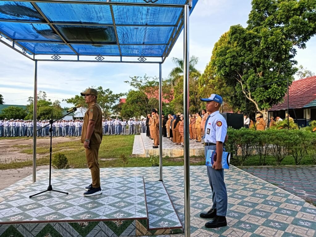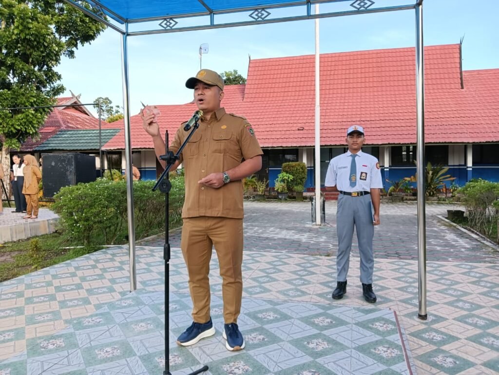 Aminudin, S.Pd., M.Pd. bertindak sebagai pembina dalam upacara Senin, 24 Februari 2025 di lapangan SMAN 5 Palangka Raya. Guru BK ini menyampaikan amanat kepada para siswa tentang pentingnya sikap yang baik untuk membangun nilai diri.