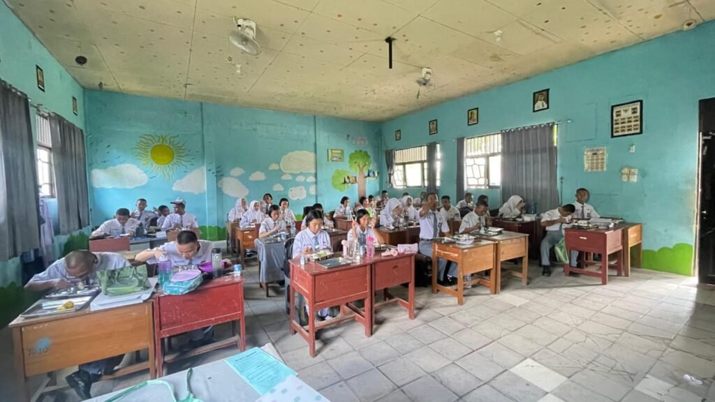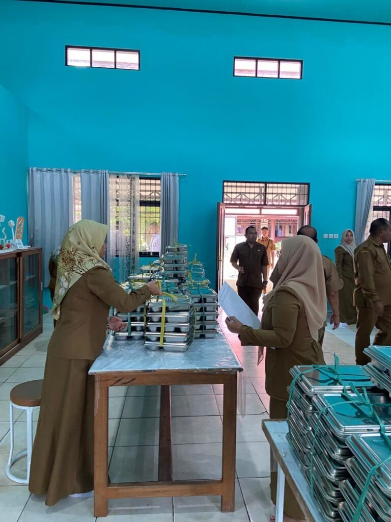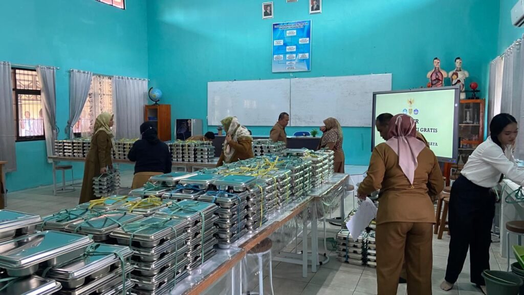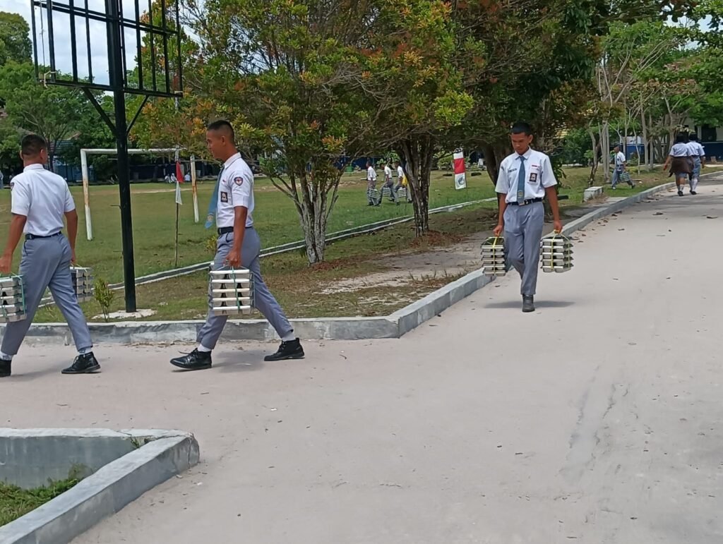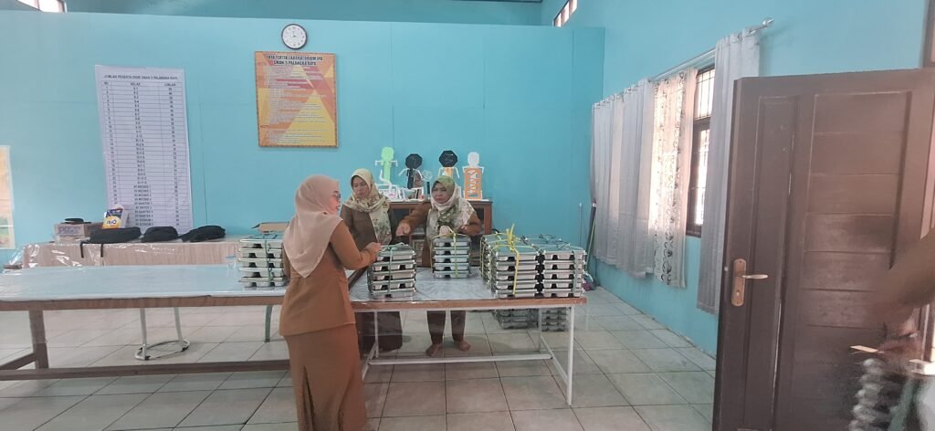 Pukul 11.00 mobil khusus Satuan Pelayanan dan Pemenuhan Gizi (SPPG) tiba di sekolah. Lebih seribu paket MBG dalam ompreng yang bersusun berikat tali pun segera dipindahkan ke Dapur MBG sekolah yang untuk sementara hari ini masih manfaat ruang laboratorium IPA. Satgas MBG sekolah ini pun bergerak cepat. Mereka segera membagikan melalui siswa pengurus kelas sesuai data siswa yang hadir pada hari ini.