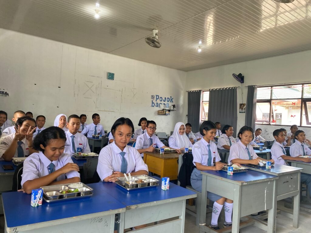 Tampak di kelas-kelas siswa begitu menikmati menu MBG. Mereka tampak lahap sehingga makanan dajam ompreng umumnya tidak bersisa.