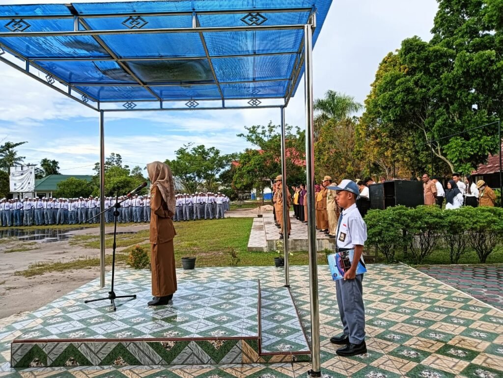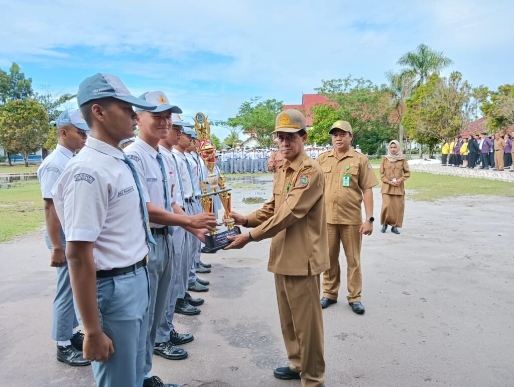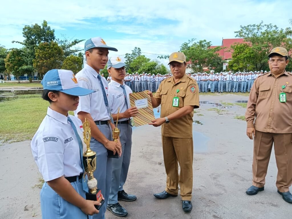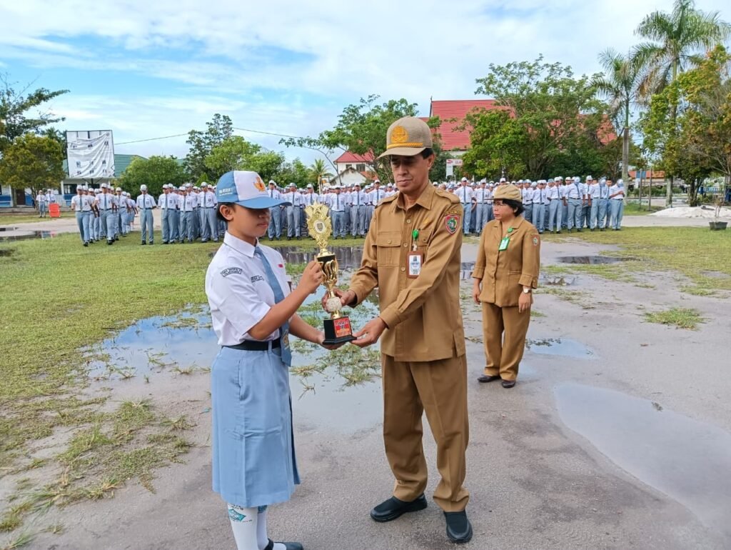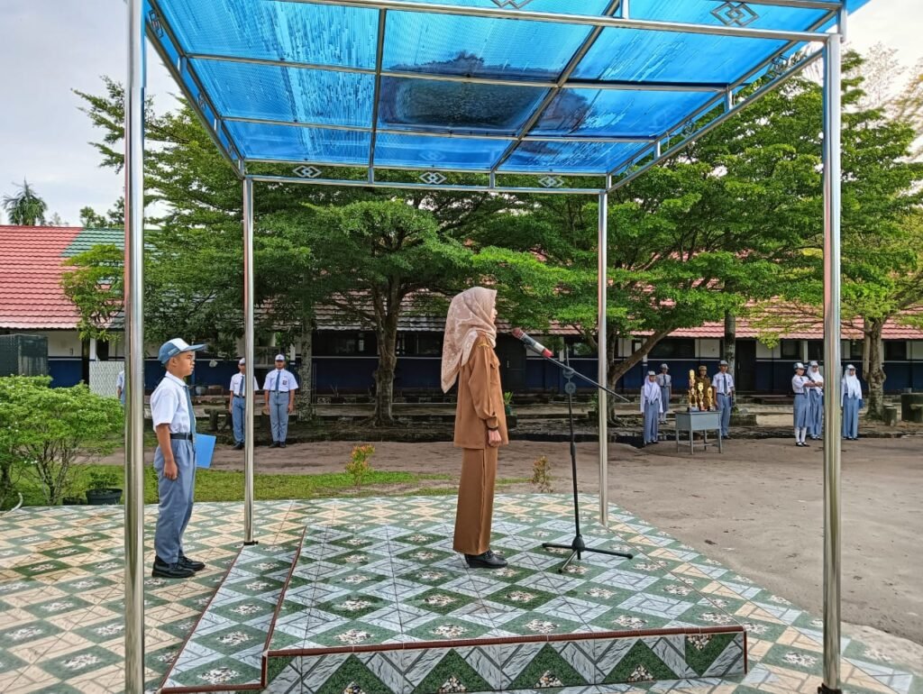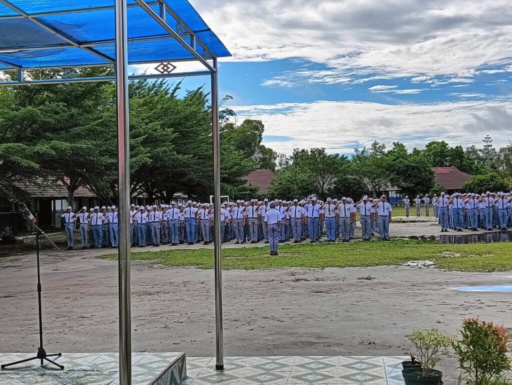 Pagi Senin, 4 November 2024 begitu sejuk membekaskan derai hujan tadi malam. Masih ada sisa genangan air di lapangan SMAN 5 Palangka Raya. Meskipun demikian, semangat penuh hikmat tetap tampak pada peserta upacara.