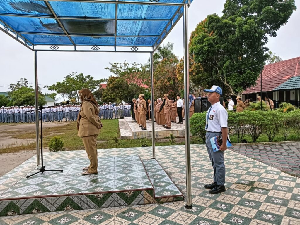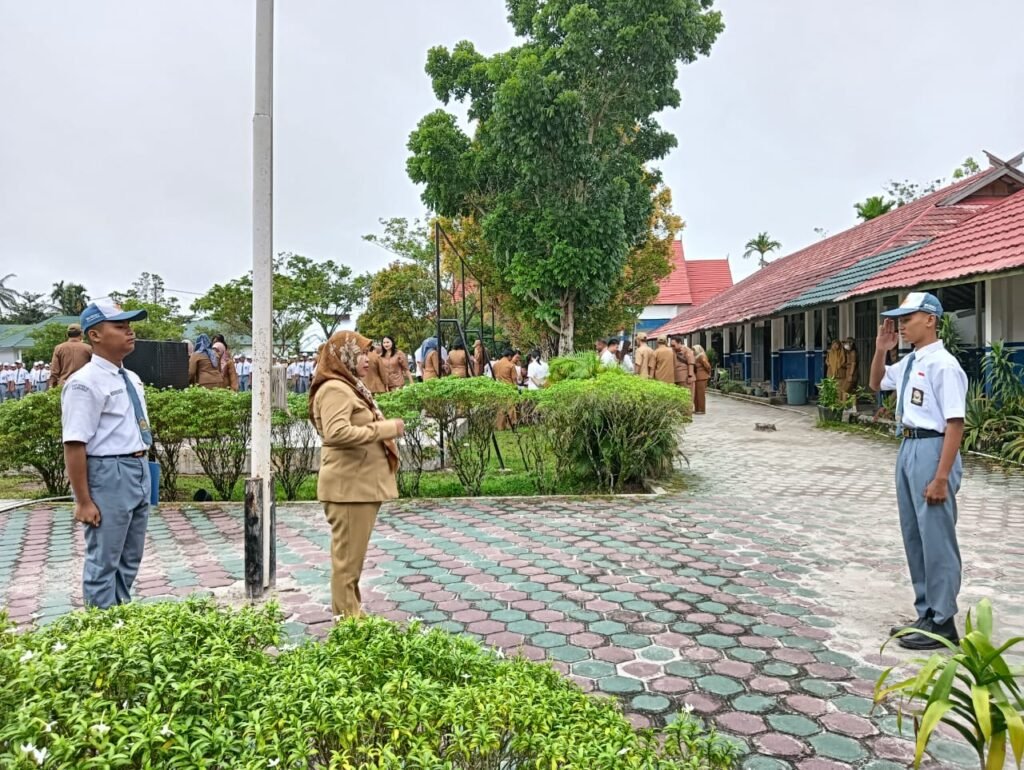 Lebih lanjut, pembina upacara Nurliani, S.Pd., mengajak siswa untuk tidak terlambat datang ke sekolah. Bangun lebih pagi dan bersiap lebih awal akan lebih tenang berangkat ke sekolah.