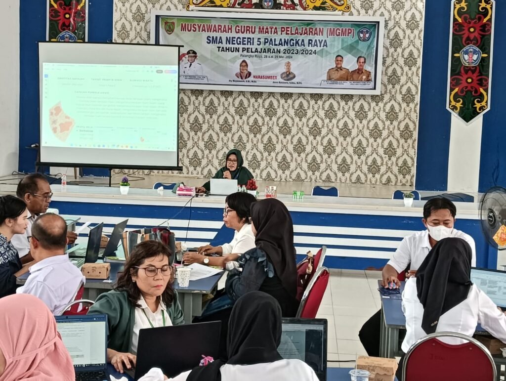Berkaitan dengan itu, MGMP pun digelar dan diikuti para guru SMAN 5 Palangka Raya. Kegiatan dalam rangka menyongsong tahun pelajaran 2024/2025 ini berlangsung di aula sekolah pada Selasa—Rabu, 28—29 Mei 2024.