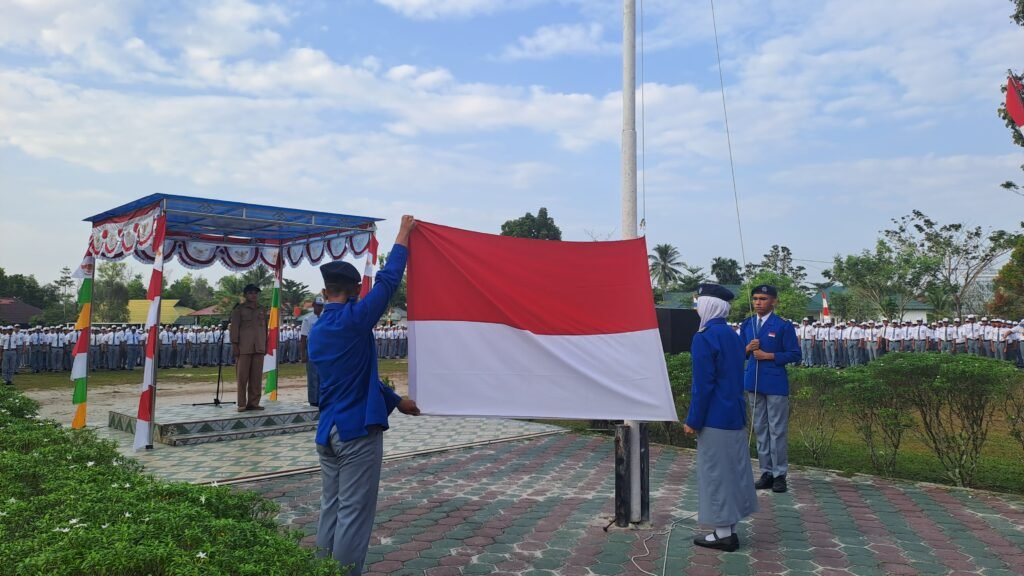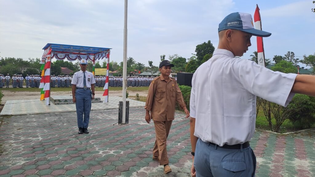 Masih dalam suasana semarak HUT ke-79 RI yang baru berlalu, upacara Senin, 19 2024 tetap semarak, khidmat, dan bersemangat. Cuaca yang sejuk teduh pun begitu mendukung pelaksanaan upacara di halaman SMAN 5 Palangka Raya.